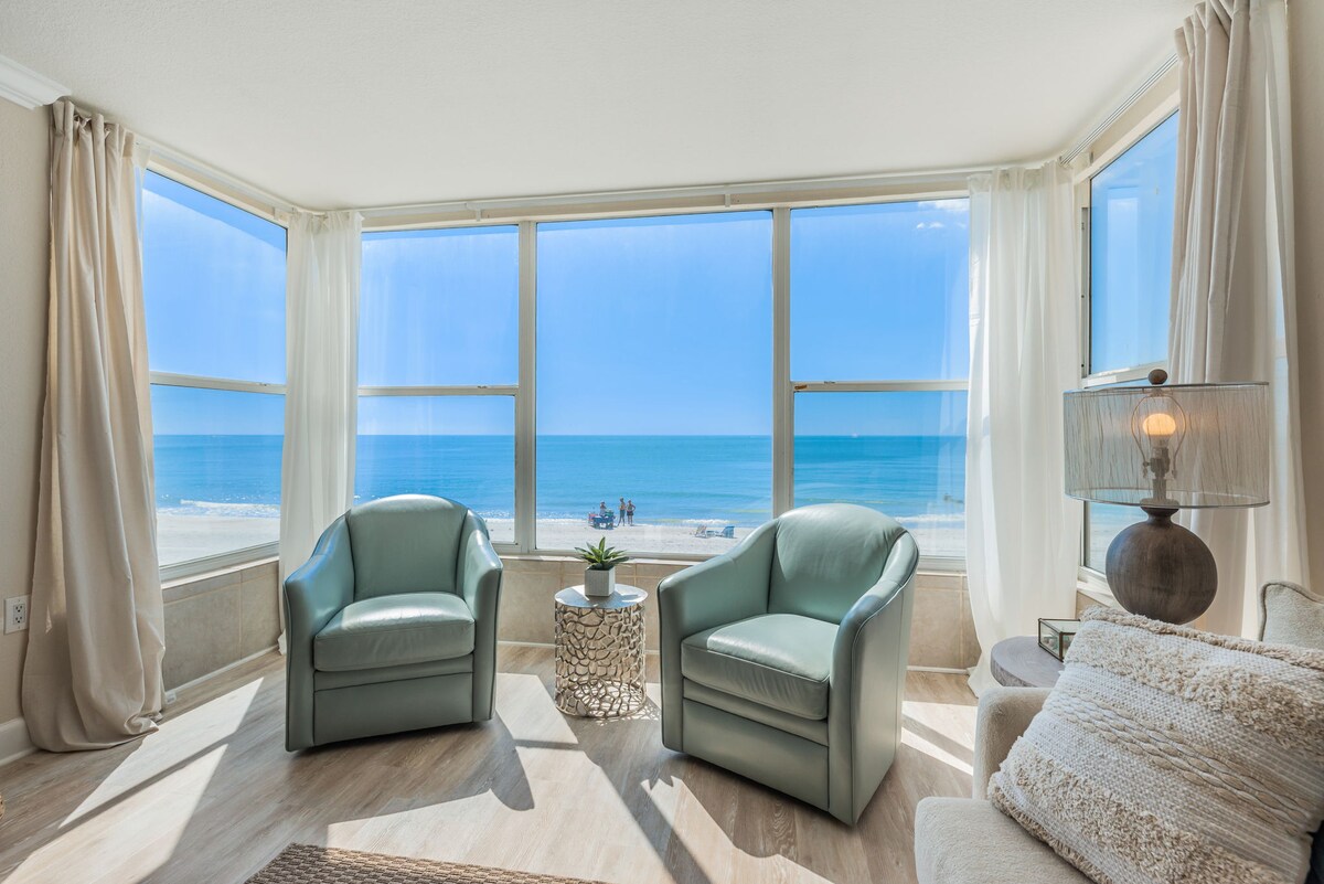 Svježe renoviran kondominij uz plažu s pogledom na obalu. Ovaj zadivljujući kondominij ima moderan obalni dekor, sa jarkim bojama, detaljima inspirisanim plažom i panoramskim pogledom na okean. Ovaj divni kondominij ima privatni balkon koji omogućava uživanje u morskom povjetarcu i zadivljujućim zalascima sunca. Centralna lokacija između Clearwatera i St. Petea pruža jednostavan pristup obližnjim restoranima, prodavnicama i zabavnim sadržajima, što ga čini savršenim utočištem uz plažu za opuštanje i slobodno vrijeme.