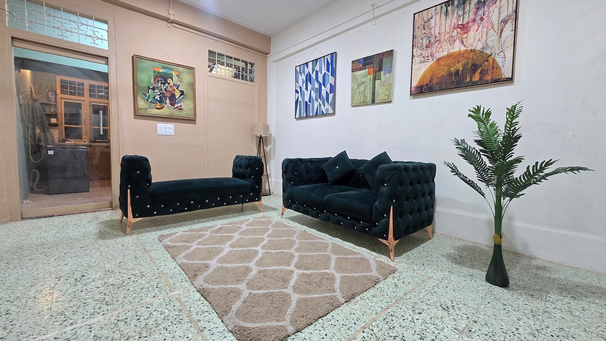 1BHK stan s pogledom na Arapsko more i grad od 180 stepeni. Nalazi se u jednom od najistaknutijih dijelova Mumbaija u Versovi. Kuća je potpuno namještena, ima klima-uređaj u spavaćoj sobi i potpuno funkcionalnu kuhinju. House pomaže u posjetu alternativnim danima čišćenja i čak može zatražiti od nje da kuha hranu. Vrijeme dolaska 14:00, vrijeme odlaska u 11:00 h Fiksno vrijeme. Zabave i fotografisanje NISU dozvoljeni. ID u Mumbaiju za jedno noćenje nije dozvoljen u skladu s pravilima društva STROGO BEZ RANOG DOLASKA. Ne tražite isto.
