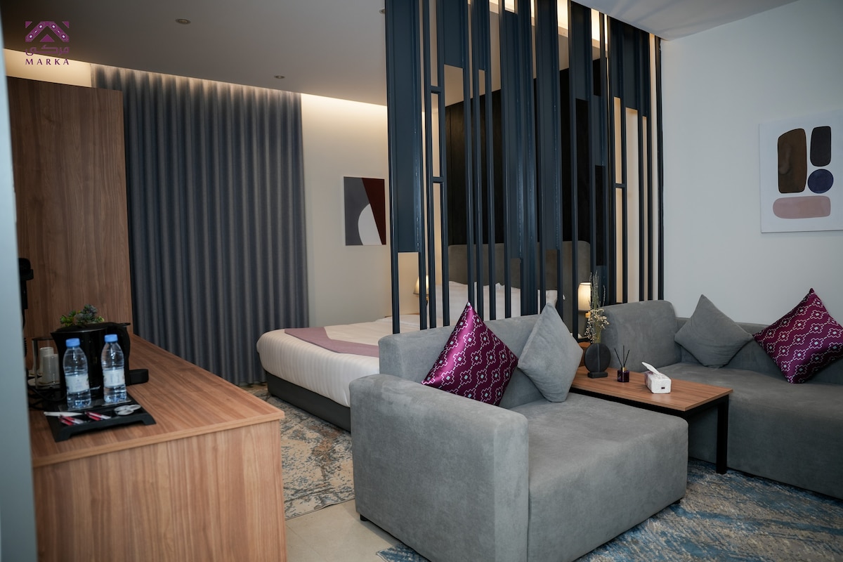 Luksuzni studio sa: • Udoban glavni krevet kako bi se osigurao miran san. • Elegantan prostor za sjedenje s udobnim sapunom. • HDTV za gledanje. • Kutak za kafu za tople napitke. • Spremna kuhinja. • Privatno kupatilo sa svim zahtjevima šampona, sapuna i gela za tuširanje za potpunu udobnost. U blizini : Poslanikova džamija traje manje od 10 minuta Željeznička stanica Al-Haramain za manje od 10 minuta Aerodrom Prince Mohammed bin Abdulaziz za manje od 15 minuta