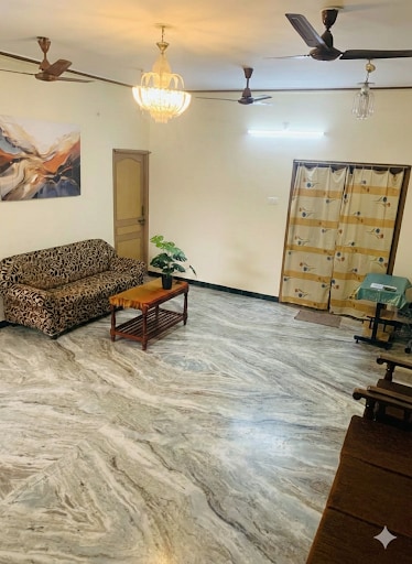 Cozy and modern 3BHK Airbnb just 2.5 miles from Madurai Railway Station🚉 Perfect for an enjoyable stay. 🏡 Fully furnished, 3 spacious bedrooms🛌with washing machine, fridge, fully equipped kitchen. Home has 8 ceiling fans🪭Has RO water🚰,iron box, exhaust fan, laptop work table, dining table, water heater, WI-FI🛜 a swing !__! Home has neem trees in all 3 sides. 🌳 Secure car parking. 🅿️ Living room and one bed room have smart TVs.📺 Flexible check-in &check-out time