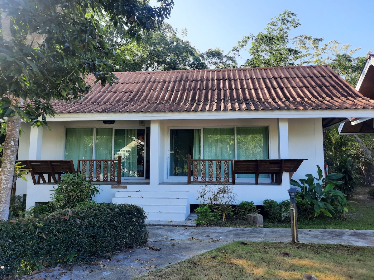 Čist, prozračan, privatni bungalov, s velikim bračnim krevetom i vlastitim kupatilom u prekrasnom prostoru. Pješačka udaljenost do veganskog restorana Earth Tone, White Buddha i požara u Paradiseu. Također smo udaljeni 15 minuta hoda od centra grada, ali dovoljno daleko da se osjećamo udaljeno s tišinom koja dolazi s tim. Imamo besplatan parking u sklopu objekta i udobnu zelenu površinu između bungalova za odmor ili meditaciju. Možete odabrati mango s našeg drveća ili zatražiti pomoć pri rezervisanju prevoza ili obilazaka.
