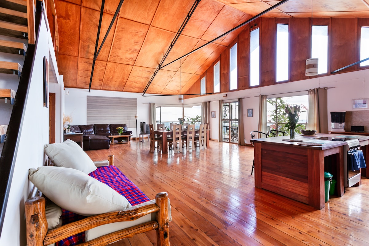 We’re excited to share Twiga Tano, our beloved family home on Champagne Ridge! Bring your friends and family to relax, reconnect, and soak in the breathtaking views and stunning sunsets. Enjoy hiking, cozy evenings, and the serenity of nature, just a 1-hour drive from Karen. Perched on the edge of the Great Rift Valley, Twiga Tano comfortably accommodates up to 15 guests, and includes a housekeeper to ensure a seamless stay. A private chef can be arranged upon request at an additional fee.