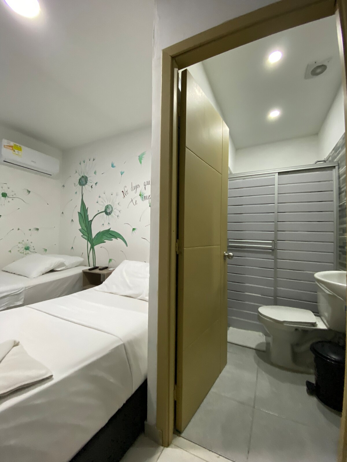Dvokrevetna soba s bračnim krevetom u hotelu Boutique Casa Encantada, idealna za parove ili putnike koji traže udobnost u historijskom centru Santa Marte. Opremljen je bračnim krevetom, klima-uređajem, privatnim kupatilom, TV-om i Wi-Fi mrežom. Uživajte u bazenu, terasi i hotelskom baru, kao i u svježem doručku svakog jutra. Samo jedan blok od Malecóna i vrlo blizu Parque de los Novios, restorana i plaža. Doživite autentičan karipski doživljaj.