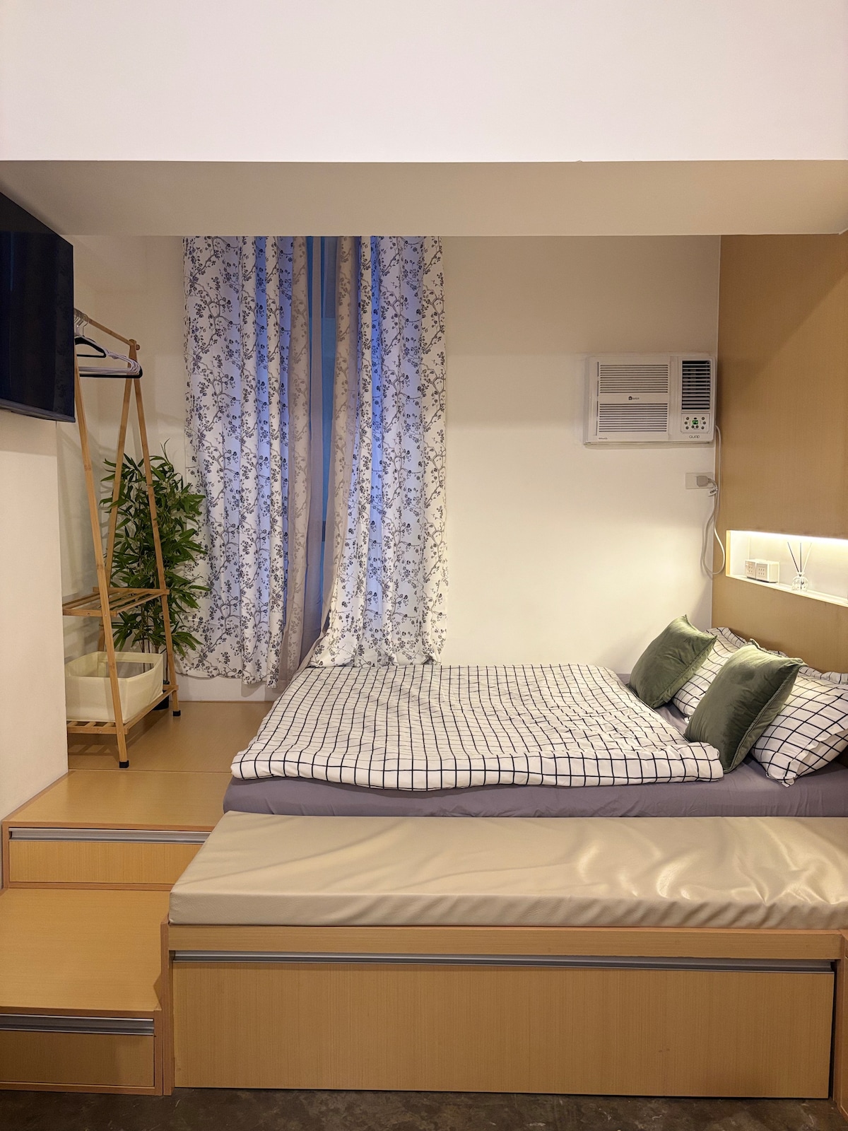 Svijetli studio inspirisan Mediteranom u četvrti Uptown Cebu's Baseline Prestige, dizajniran za lagane dane u gradu i otočne odmore. Probudite se uz meke obalne tonove, radite na brzim vlaknima, a zatim prošetajte do kafića, trgovačkih centara i bolnica udaljenih samo nekoliko minuta. Udobnost u hotelu s praktičnim detaljima: filtrirana voda za piće, topla tuš kabina i potpuno opremljena čajna kuhinja.