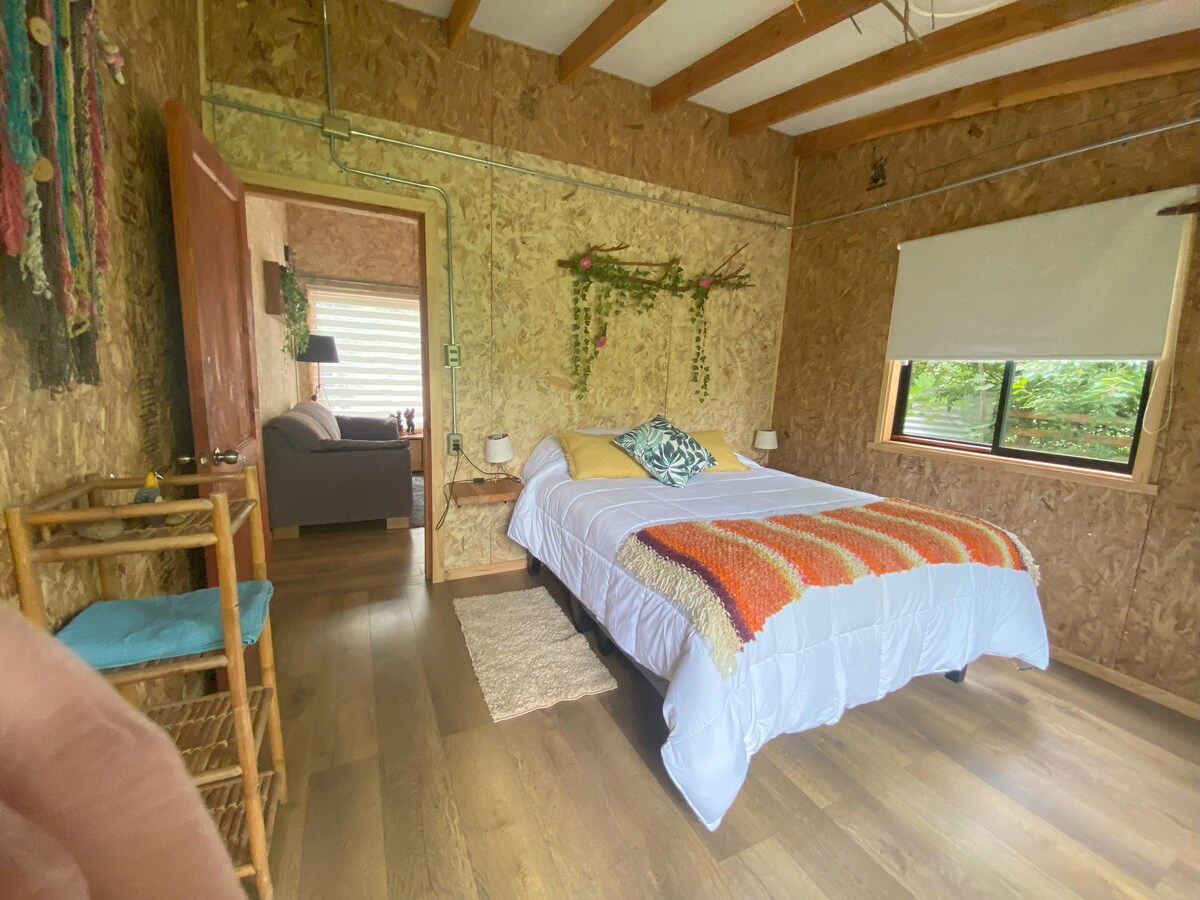 Mini cabaña ubicada en el pueblo de Curarrehue, perfecta para quienes buscan aventura, naturaleza y descanso. Desde aquí podrás explorar lagos, cascadas, termas y realizar trekking entre bosques de araucarias, rodeado de paisajes únicos del sur de Chile. La cabaña cuenta con dos dormitorios, ambos con baño privado, cocina equipada y wifi, ofreciendo comodidad y privacidad después de un día de exploración. Un punto de partida ideal para descubrir los atractivos de Curarrehue y sus alrededores.