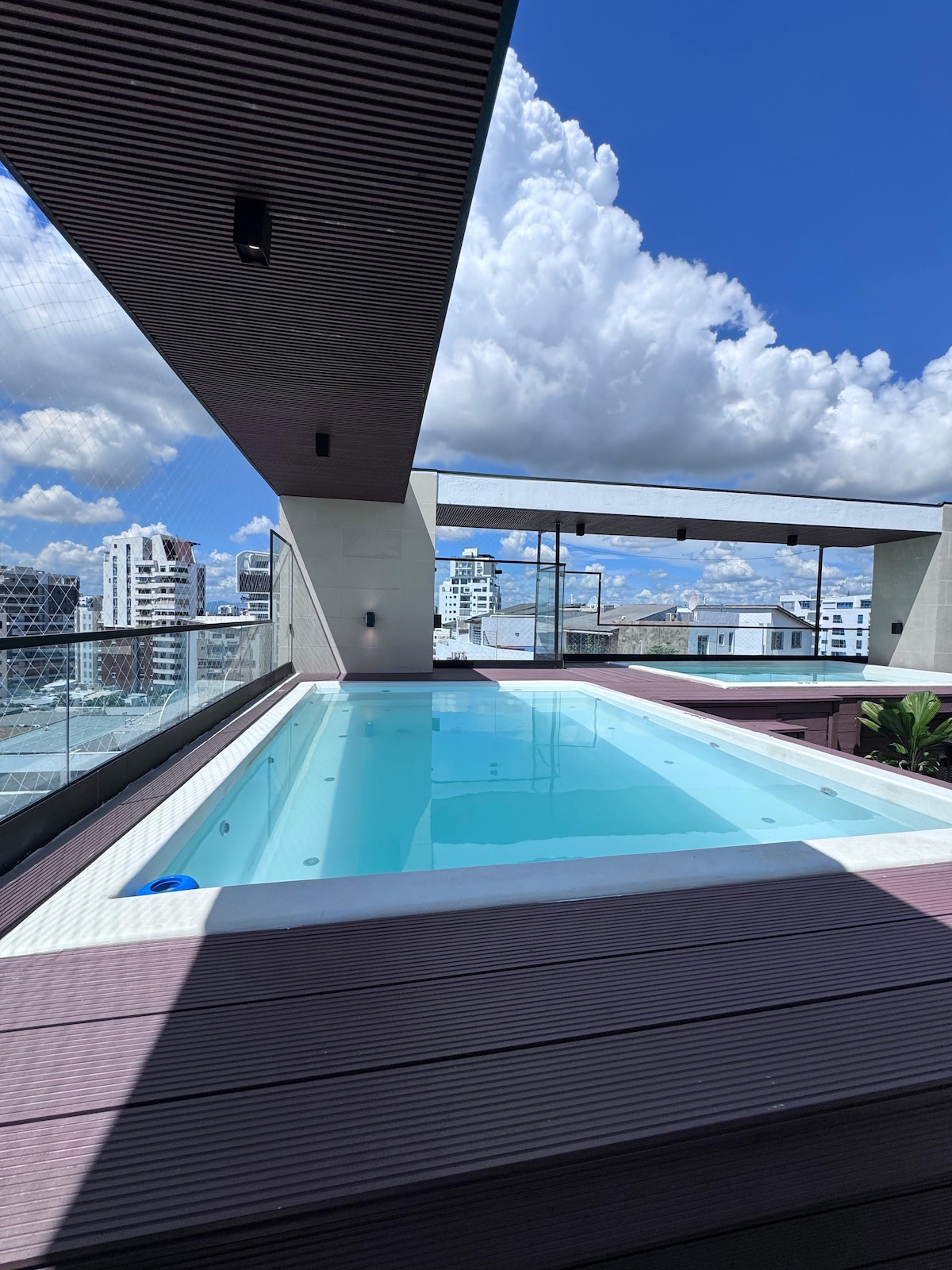 Este lujoso apartamento cuenta con la principales amenidades para tener unas vacaciónes inolvidables. Contamos con un minibar, piscina con vista infinita, espectacular balcón, ubicado en el mismo centro de la ciudad, al lado de galería 360, A 3-5 minutos en vehículo dependiendo el tránsito de Agora Mall. NOTAS. El día antes de la llegada del huésped, debería enviar sus identificación de los adultos mayores de edad. Por la vía de mensajería de AIRBNB.