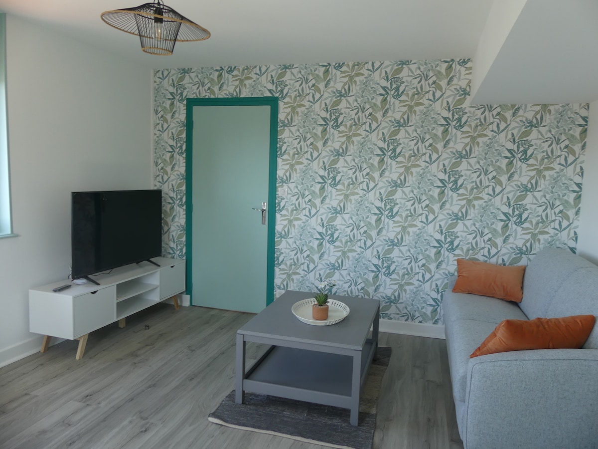 Pored termalnog odmarališta, 20 minuta od Puys Volcans d 'Auvergne (klasifikovanog kao UNESCO-ov popis svjetske baštine) i VULCANIA , zaustavite se u Châtel-Guyonu i stavite prtljag u vrlo svijetli studio od 24 m2, prostranu visinu stropa 3m80. Odmorite se u potpuno novom stanu s apsolutnim mirom (pogled na termalni park). Ormar. Udoban kauč s 2 sjedišta, TV od 80 cm, Wi-Fi, krevet s 2 sjedišta, rerna, mikrovalna pećnica, mašina za pranje veša... Prostrana tuš kabina 120 x 80 cm