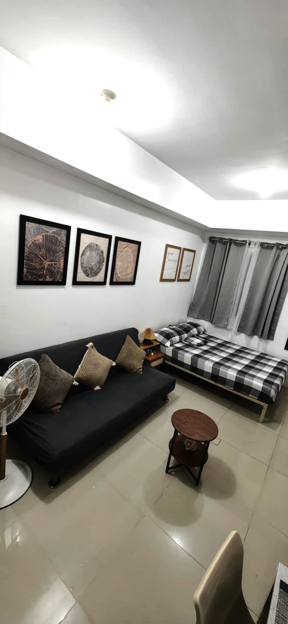 Discover our spacious and bright 1BR end unit with balcony in the newly built Tower 4, Fern Residences. Designed with you in mind, our luxurious boutique-hotel style unit features a fully-equipped kitchen, hotel quality mattress and beddings, convertible coffee to dining table, washing machine and fast WiFi. It is ideal for short and extended stay travellers and for those who just want to have a relaxing staycation.