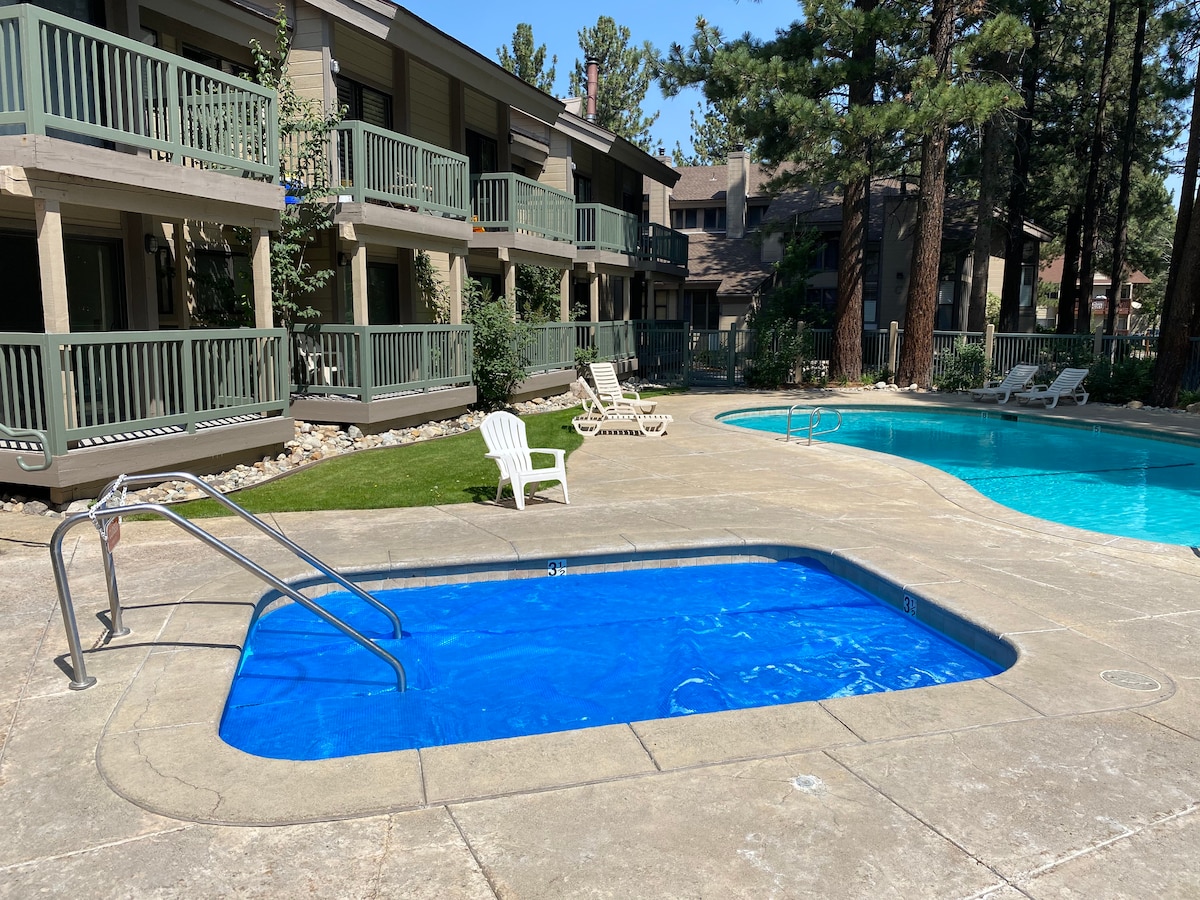 Ovaj prostrani, svjetli i preuređeni kondominij 1bd 1ba u kompleksu Sunrise može primiti 4 osobe i savršeno je mjesto za opuštanje nakon što istražite sve što Mammoth Lakes ima za ponuditi. Uživajte u kafi na privatnoj terasi s pogledom na Sherwin 's i opustite se u sezonskom bazenu i/ili masažnoj kadi prije nego što se rashladite na kauču pored kamina. Postoji mnogo parkinga za prikolice i skladište za vašu opremu, bilo da posjećujete zbog skijanja, biciklizma, ribolova, planinarenja, golfa ili plovidbe.