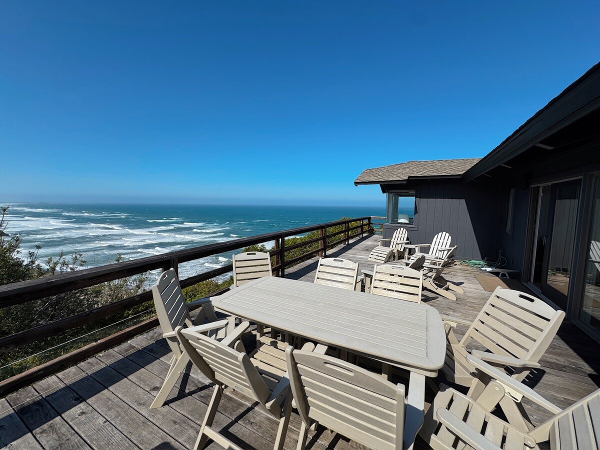 Naša prekrasna kuća na plaži smještena je 150 stopa iznad Tihog okeana na privatnom hektaru od pola hektara s pogledom na okean i svjetionik Point Arena s gotovo svakog prozora! Uživajte u prelijepim zalascima sunca na našoj prostranoj terasi. Opustite se u privatnoj hidromasažnoj kadi pod zvijezdama. Ovo je zaista klasična kuća na plaži s nadsvođenim plafonima i mnogim prozorima. Pružamo i brzi bežični pristup internetu. Prekrasna privatna plaža: Plaža je udaljena 5 minuta vožnje. Tesla punjač je dostupan.