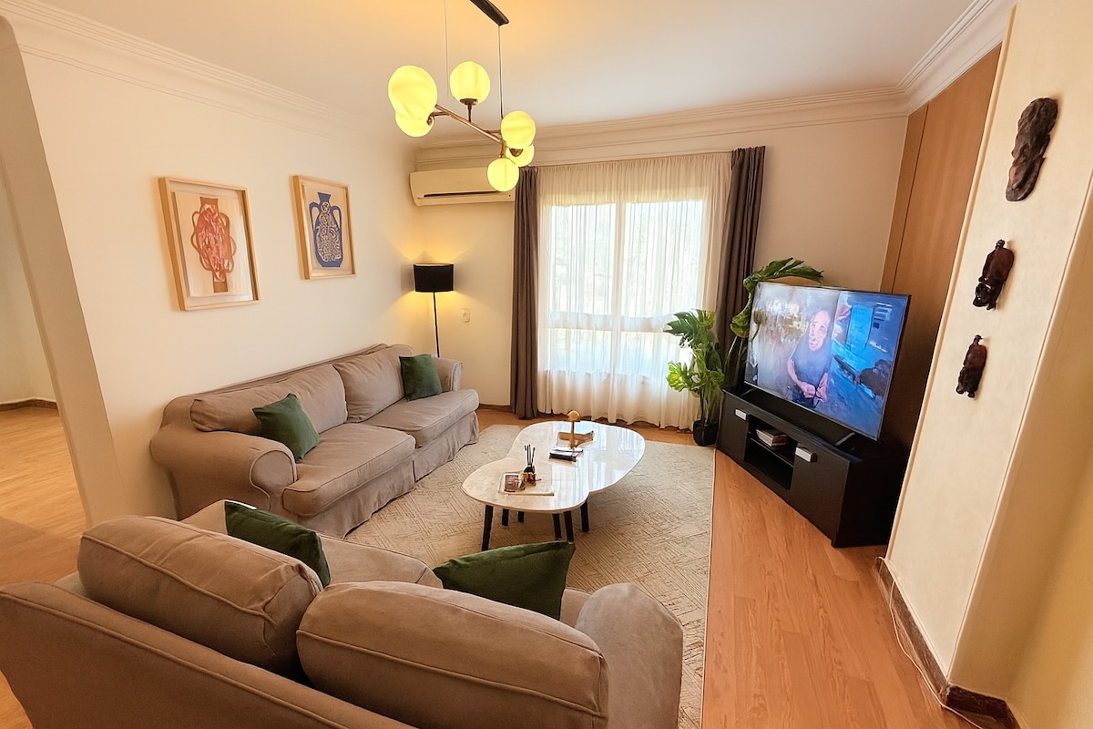 Smješten u srcu Degle, Maadi, naš penthouse nudi mješavinu udobnosti i šarma na jednom od najboljih mjesta u Kairu. Degla je poznata po lisnatim ulicama, kafićima i opuštenoj atmosferi, što je čini savršenom za svakoga ko se želi opustiti. Penthouse je prostran, ispunjen prirodnim svjetlom i može se pohvaliti velikom terasom s odličnim pogledom. Bilo da ste ovdje da istražujete ili se opustite, ovo je savršeno mjesto u Maadiju. Rezervišite svoj boravak i doživite Kairo odozgo!