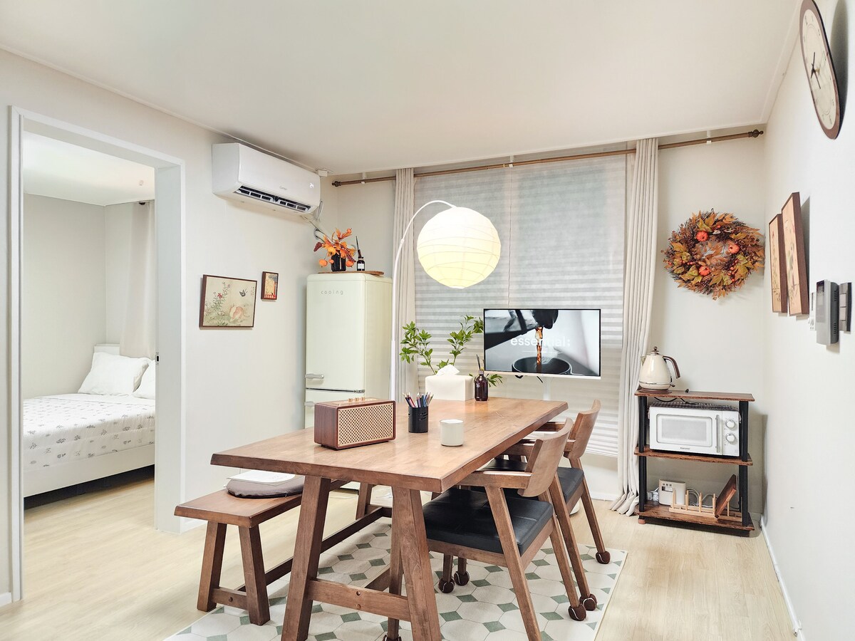 Ovo je Hostay, koji će vaše putovanje u Seul učiniti posebnim. ? Najbolja lokacija za vaše putovanje u Seul -Mangwon Station on Line 6 (5 min hoda)/Line 2 Hapjeong Station (15 min hoda)/Line 2, Airport Railroad Hongik University Station (15 min hoda) - Mangwon Market i Mangnidan-gil već 40 godina ⓘ Trpezarija i projektor - Zasebna trpezarija pogodna za mala okupljanja (maksimalno 6 osoba može ući) - Dostavljen je projektor čistog kvaliteta i Netflix ID ⓘ Briga o pažljivo osmišljenom smještaju - Promjena posteljine i čišćenje svaki put zbog čistoće - Obezbijeđena su osnovna sredstva za tuširanje (šampon, gel za tuširanje, regenerator) i peškiri - Blistava pegla i fen za kosu Povremeno posjećujemo profesionalnu kompaniju (Cesco) kako bismo radili na sprečavanju insekata. ⓘ Zgrada i glavni predmeti Wi-Fi/lift/klima uređaj i grijana/mašina za pranje veša/aparat za kafu/frižider/pribor za kuhanje i pribor za jelo ⓘ Mjere predostrožnosti smještaja - Suzdržite se od kuhanja s jakim mirisima, kao što su meso/riba u smještaju. - Zabranjeno pušenje i kućni ljubimci unutra.