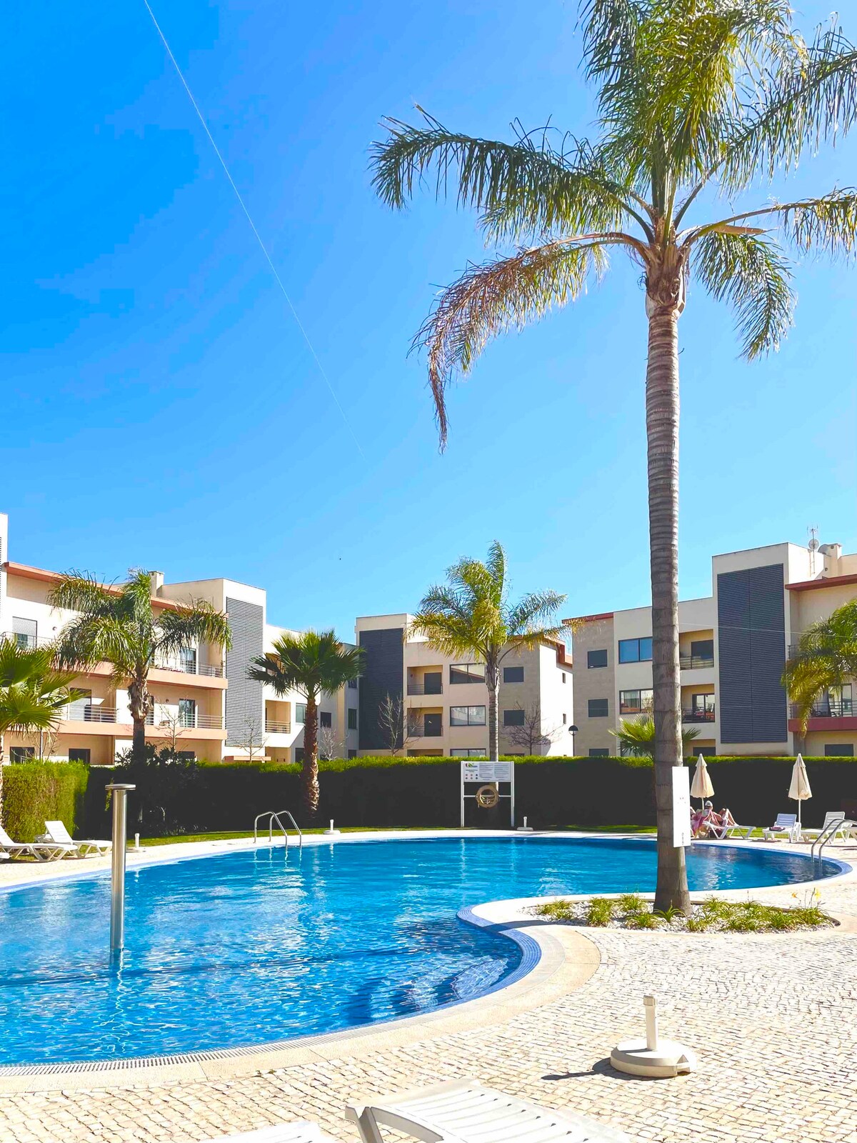 Beautiful 2BR, 2BA apartment with private pool just 200m from stunning Meia Praia beach. Walk to beachside restaurants or explore the scenic wooden boardwalk. Only 5 mins by car to the Marina, Palmares golf, and historic Lagos. Ideal for families, couples, friends, or golf lovers. Please note: construction of a new luxury hotel is underway on the adjacent plot.