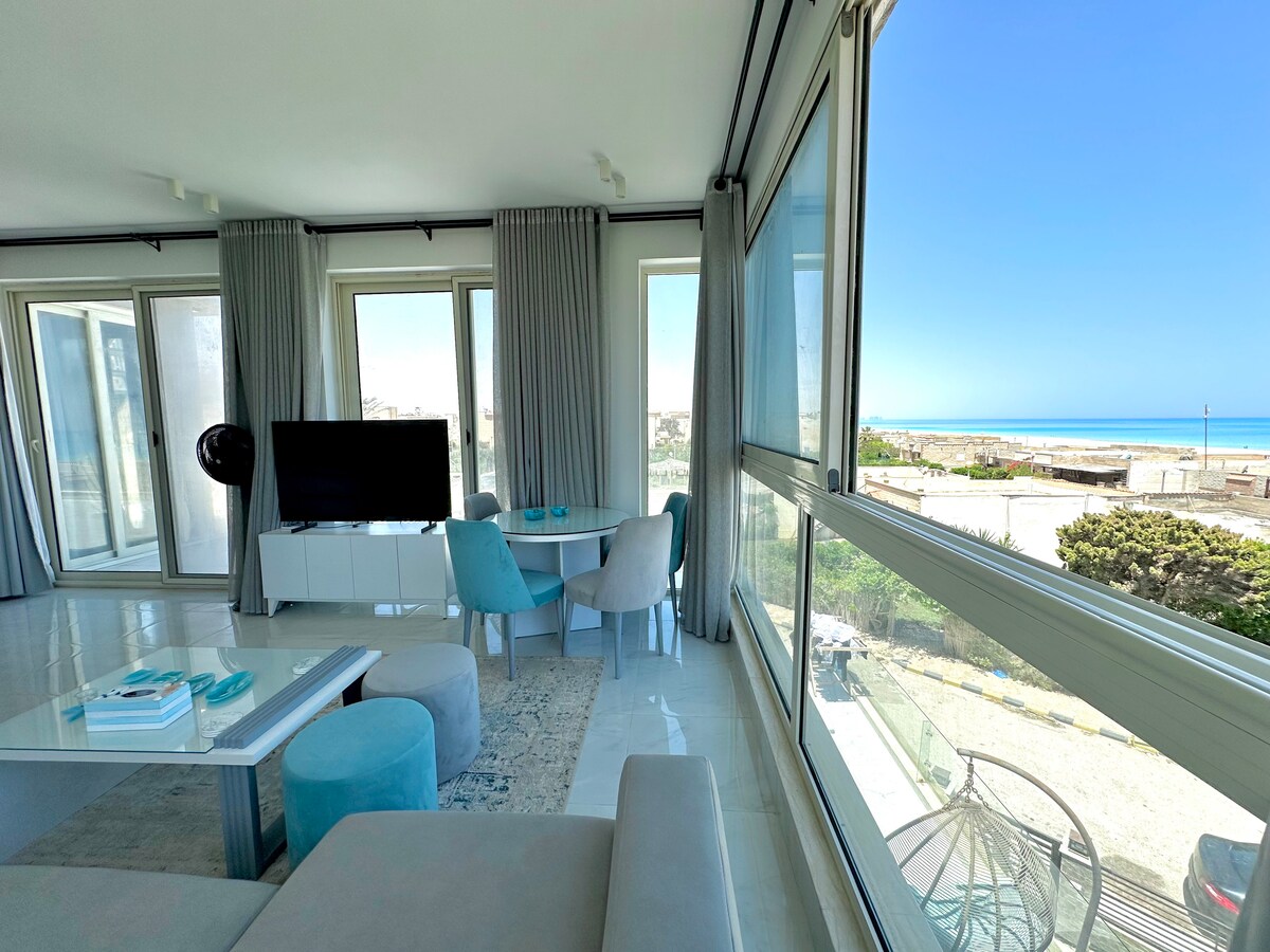 Opustite se i uživajte u odmoru u ovoj novo luksuznoj planinskoj kući,koja se nalazi nasuprot kapije Marine 2, na trećem spratu s liftom, 2 spavaće sobe, jedna od njih je glavna, 2 toaleta,potpuno namještena,opremljena, ima divan balakon s pogledom na more, a namirnice su udaljene samo 3 minute hoda. - Moguć pristup plaži Uhana Alalamein za 300LE po osobi. - Moguć pristup bazenu za golf u Portu za 300LE po osobi.