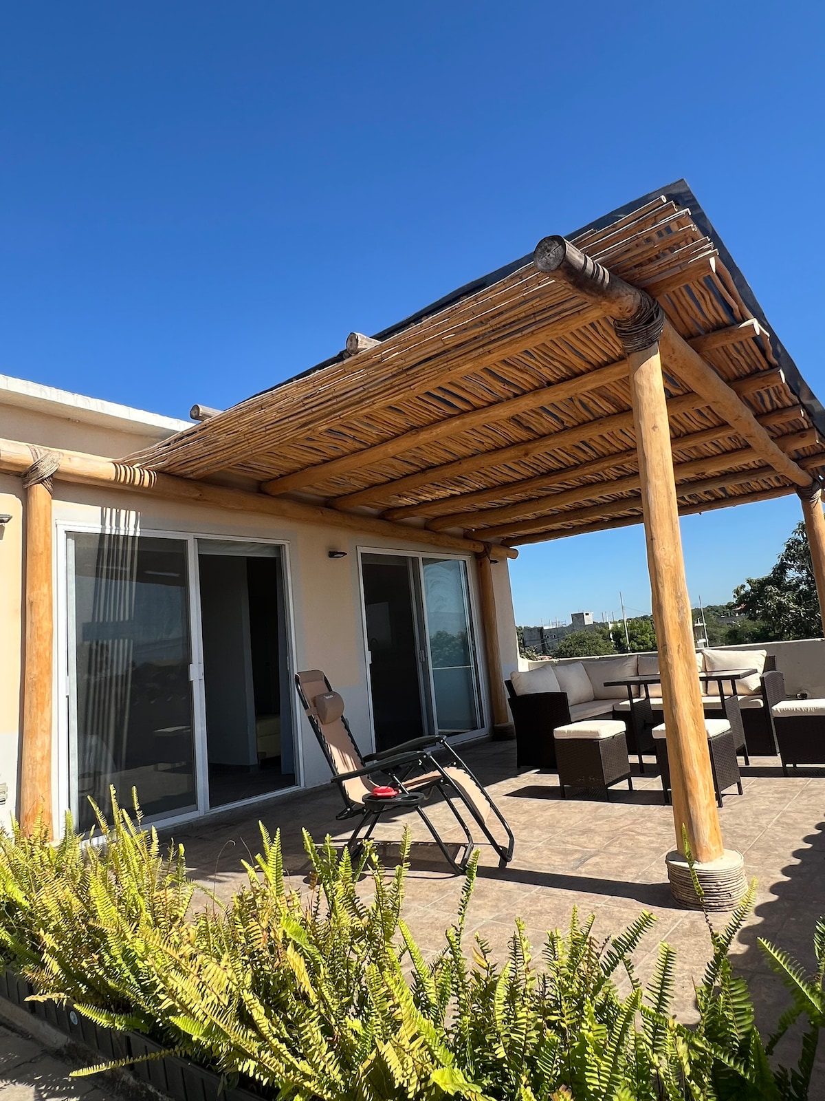 Descubre esta hermosa villa totalmente nueva con acabados modernos, ubicada en una de las zonas más exclusivas de Puerto Vallarta en zona LA MARINA. Diseñada para brindarte confort y elegancia, esta propiedad ofrece amplios espacios y acceso a excelentes amenidades. Sala de TV y sala principal Comedor y terraza privada con mesa para 8 personas 2 habitaciones: Acceso a áreas comunes terraza compartida. Campo de golf dentro del complejo (costo adicional para el acceso).
