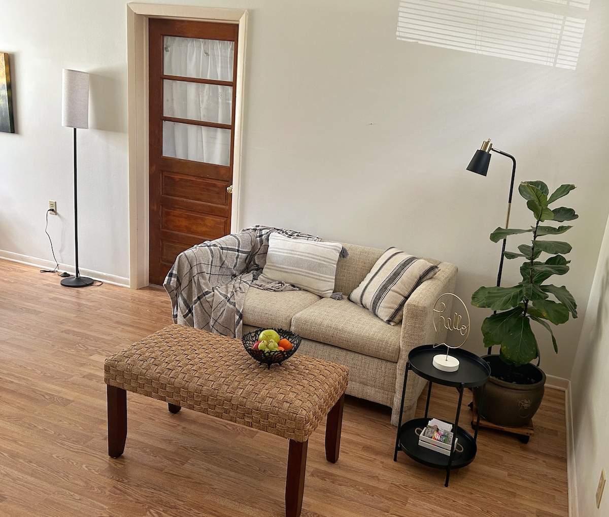 Newly remodeled Queen bed & full sleeper sofa - sleeps 4 just 12 blocks to downtown Ocala 8 miles to the WEC ( World Equestrian Center). Detached from the main house w/washer dryer, fenced in patio, 1 parking space, full kitchen. Sorry no pets. Not baby proofed. Gigablast high speed internet. Air-Bnb is separated from the main house but on the same property. Please do not go in the back yard of the main house. Security Cameras records the outside gravel parking space.