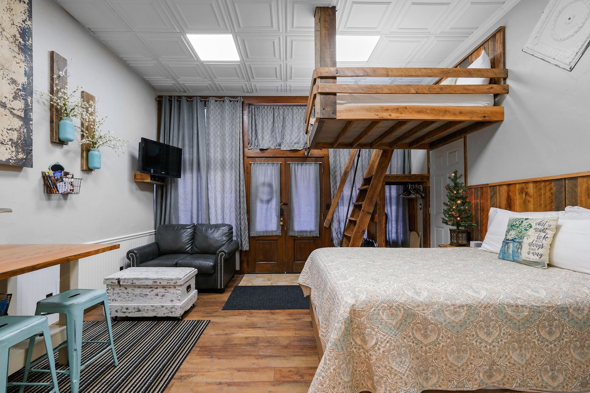Experience luxury at an affordable price in downtown Webb City's Crow's Nest! This meticulously cleaned & renovated loft features a Nectar mattress, comfy chairs, classy bathroom, & a fully equipped kitchenette. It's 2 minutes off 249, close to boutiques, food, trails, theater, & the Praying Hands. Only 15 min to Joplin or Carthage. High-speed internet, pet-friendly, laundry, & a fenced yard. The Crow's Nest offers the most lavish & economical stay in Webb City. Book now!