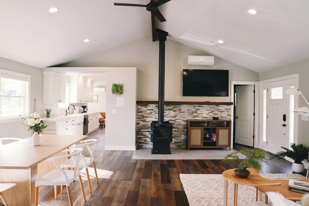 Uživajte u mirnom okruženju ovog modernog apartmana, smještenog među drvećem. Gledajte kroz cijeli zid prozora i pogledajte divlje životinje koje piju iz rijeke Fresno. Osjećajte se kao da ste skroviti u šumi, ali brzo krenite prema autoputu i na svojoj avanturi u Nacionalni park Yosemite i druge prekrasne destinacije na otvorenom. Ovaj velikodušno uređeni studio ima sve što vam je potrebno za vikend putovanje ili produženi rad s bilo kojeg mjesta za bijeg. LGBTQIA+ ljubazan domaćin i smještaj.