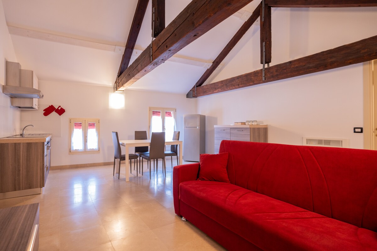 Delightful attic in the heart of the residential area of the historic centre, just a stone's throw from the Castello Estense, the University of Ferrara, and Piazza Trento-Trieste. Thanks to the inner courtyard, you will have a convenient and secure place for your car, allowing you to stay worry-free. The renovated property is situated in a historic residence. The convenience of the centre and the tranquillity of the residential streets blend to offer you an unforgettable experience!