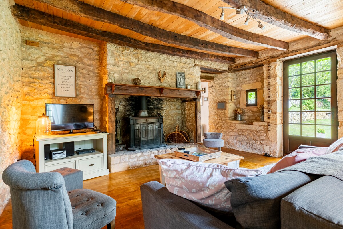 Ovaj mirni smještaj nudi opuštajući boravak za cijelu porodicu. Potpuno renovirana i opremljena kuća s odličnim pogledom na dolinu Dordogne. Kuća nije zanemarena, nalazi se u šarmantnom vrlo mirnom selu u Périgord Noiru. Dvije spavaće sobe su opremljene bračnim krevetom; 1 krevet pored jednostrukog sklopivog kreveta. Posteljina i peškiri su obezbeđeni. Vrlo svijetao i prostran smještaj u spavaćim sobama i u dnevnoj sobi - kuhinji. U blizini imate besplatan parking.