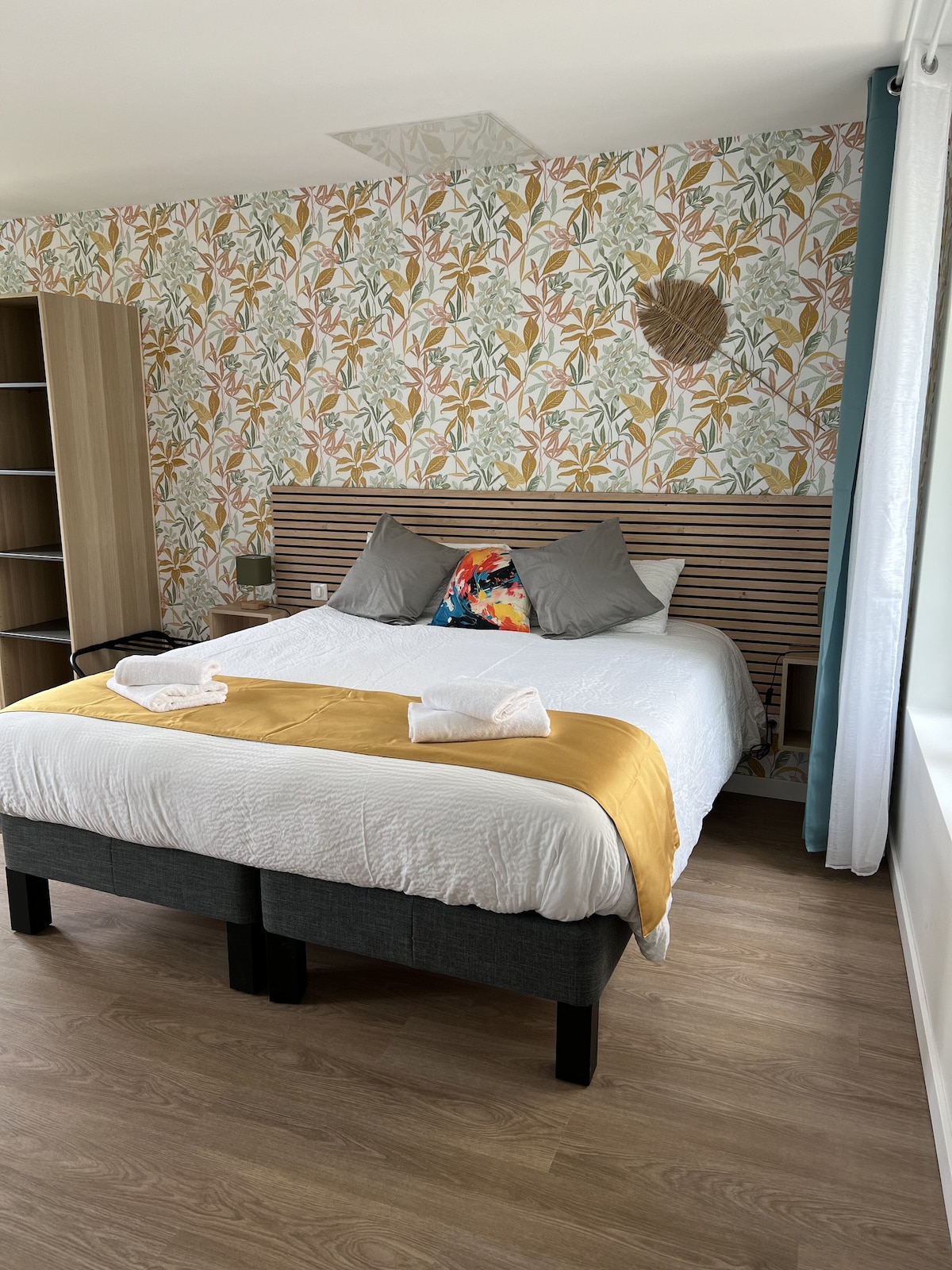cijeli jednosobni stan s 1 bračnim krevetom 1 kupatilo i dnevnim boravkom s 1 kaučem na razvlačenje i malim opremljenim kuhinjskim frižiderom ,mikrovalnom peškirom, aparatom za kafu, buielloireom i svim posuđem, hotelskim predstavljanjem peškira za kupovinu i gelom za tuširanje i sapunom. nalazi se na 1. spratu u dvospratnoj zgradi u paviljonu i vrlo mirnom i prijateljskom parkingu ispred i autobusom i tramvajima i prodavnicama 5 minuta hoda