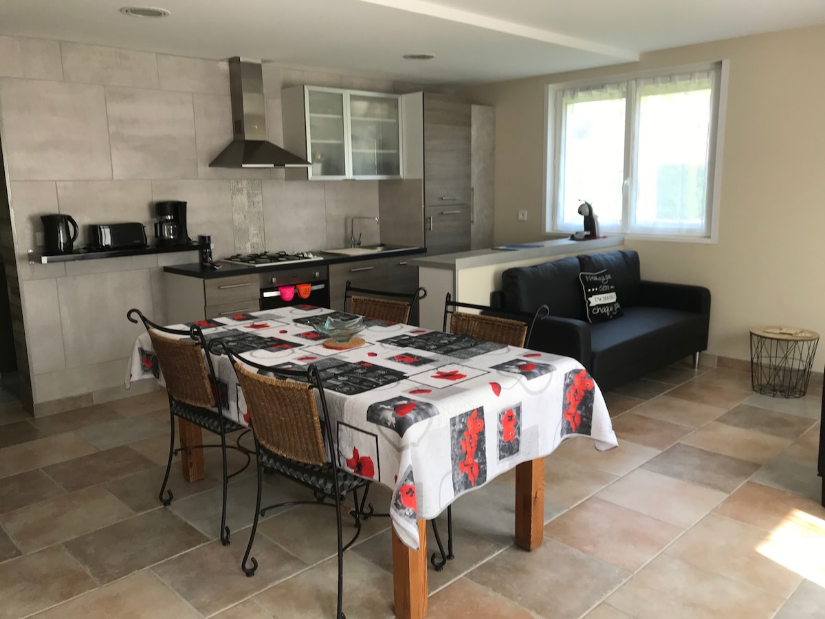 ✨ Čahura s spa centrom u Mouchard ✨Juri ✨ 💕 Wellness i romantika 🌿 Priroda i otkriće 👨👩👧 Porodica i praksa Odlično mjesto za wellness boravak ili romantični vikend. Stan s privatnim kupatilom, 160 x 200 kreveta, TV salonom i opremljenom kuhinjom. U blizini vinograda Jura, solana, termalnih kupatila i vodopada. Salins-les-Bains, Arbois, Port-Lesney i Arc-et-Senans. Stanica i centar na pješačkoj udaljenosti, parking u blizini. Dostupne su igre, knjige i krevetić za bebe. Garantovano isključenje bez Wi-Fi mreže 🌿