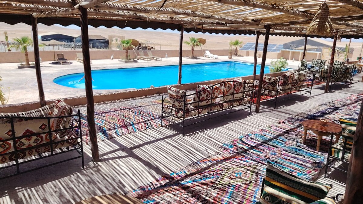 Au cœur du désert d’Agafay, face aux montagnes de l’Atlas, profitez d’un séjour unique dans un camp de 5 tentes confortables, chacune équipée d’un lit double, deux lits simples, salle de bain privative avec douche chaude et toilettes. Le camp dispose de salons sous tente, brasero pour feux de bois, cuisine collective avec wifi, espaces détente avec hamacs, ainsi que des activités comme pétanque et tir à l’arc. Un lieu idéal pour nature, calme et authenticité. Activité disponible sur place.