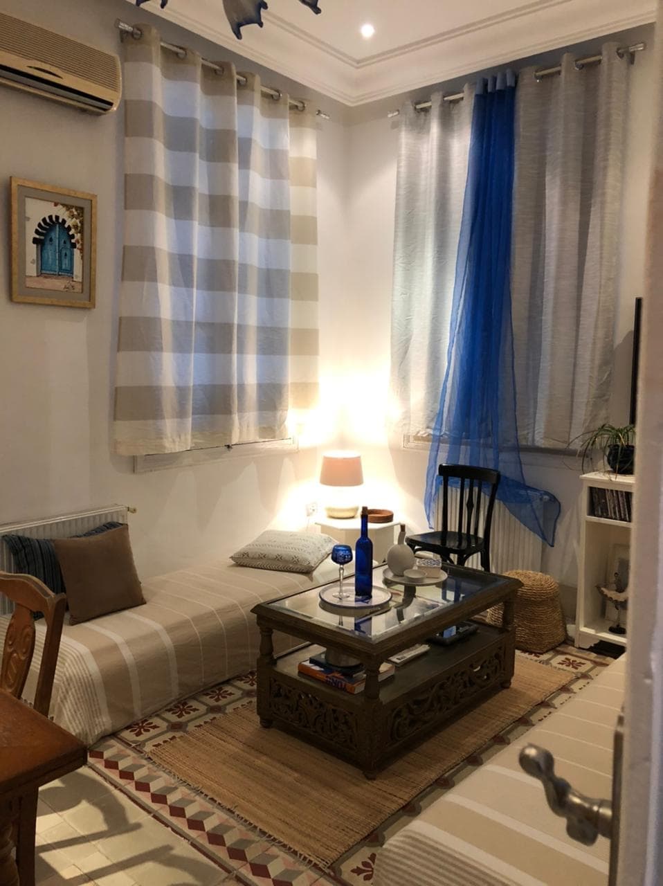 Prostran stan, s klasičnim tunisko-francuskim dizajnom, u srcu poznatog Marsa Plagea. Na vašem pragu su i plaža i centralna trgovačka četvrt, što čini lokaciju zaista nenadmašnom u svim Tunis Banlieues. Oprema: ● klima-uređaj ● Potpuno opremljena kuhinja ● Wi-Fi internet ● TV ● Mašina za pranje veša... Sistem● centralnog grijanja koji pruža toplu vodu i plinski šporet i radijatorske jedinice ● Pegla odjeća. ● Fen ●Električni sokovnik ●Aparat za kafu...