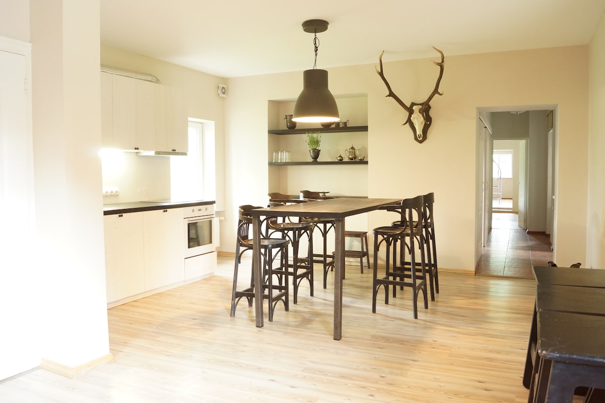 Recently renovated, stylish and cozy 85 m² two-level studio in a quiet green area of Riga – Bieriņi. Perfect for relaxing and escaping the city rush. Designed and furnished with care. 20 min by bus or 10 min by taxi to Old Town. Nearby: Āgenskalns, Torņakalns. Jūrmala – 30 min by car/train. Airport – 10 min. Check my other listings by clicking my photo and scrolling down to “View all my listings”