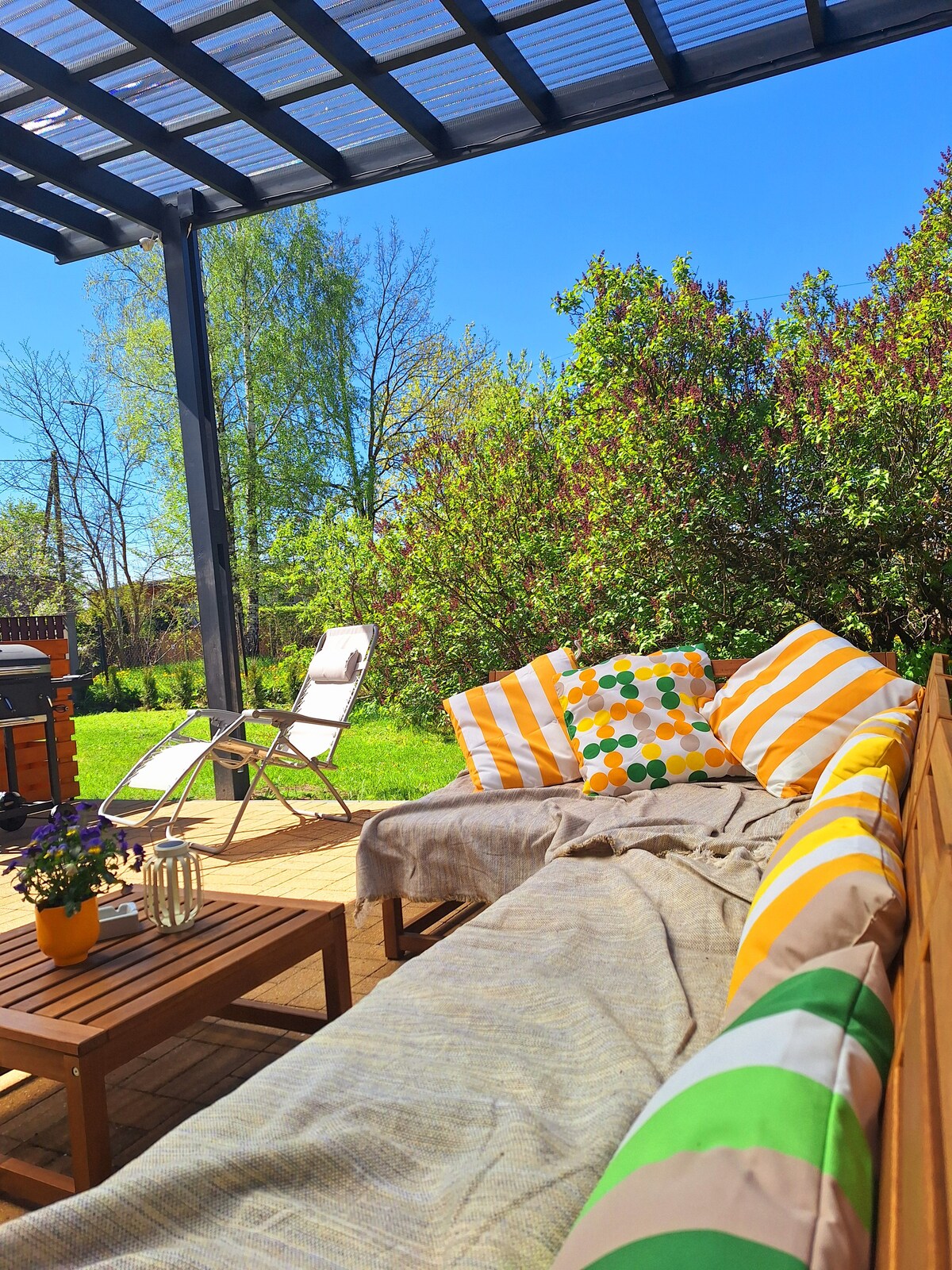 Uživajte u mirnom odmoru samo nekoliko minuta od centra Rige i aerodroma! „Linini” je udobna, stilski uređena seoska kućica dizajnirana da pruži udobnost i mir. Vani goste dočekuje prostran i siguran vrt, pogodan i za porodice s djecom i za parove koji žele uživati u miru. Navečer, nadstrešnica s krovom stvara posebnu atmosferu, idealno mjesto za opuštanje čak i po laganoj kiši Područje je tiho i sigurno, ali trgovine i javni prevoz su udaljeni samo nekoliko minuta