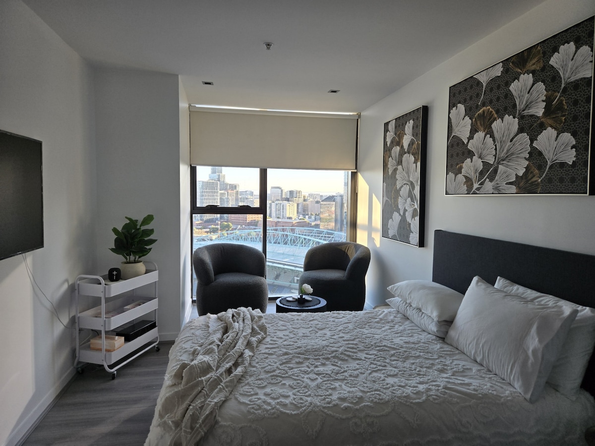 Newly renovated studio apartment. You can use the entire apartment freely without having to share it with anyone. The beautiful city and park scenery, especially at night, when the lights come on, is dazzling. It is very close to Southern Cross station. After arriving by sky bus from the airport, you can walk to the apartment in five minutes.and in the free zone.