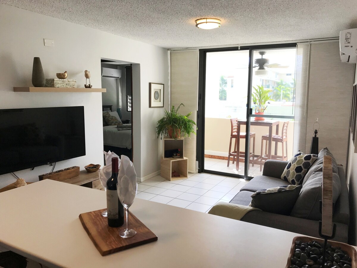 Pobjegnite u ovaj šarmantni 1BR/1BA stan samo nekoliko koraka od plaže Playa Azul u Luquillu i 40 minuta od San Juana. Uživajte u prostranom balkonu sa zadivljujućim pogledom na El Yunque i okean. Spavaća soba ima klima-uređaj i udoban bračni krevet. Unutra ćete pronaći privlačne dnevne boravke i trpezarije, namjenski radni prostor i potpuno opremljenu kuhinju s otokom i mašinom za suđe. Mašina za pranje/sušenje veša je uključena. Nalazi se na 3. spratu prilazne zgrade (bez lifta).