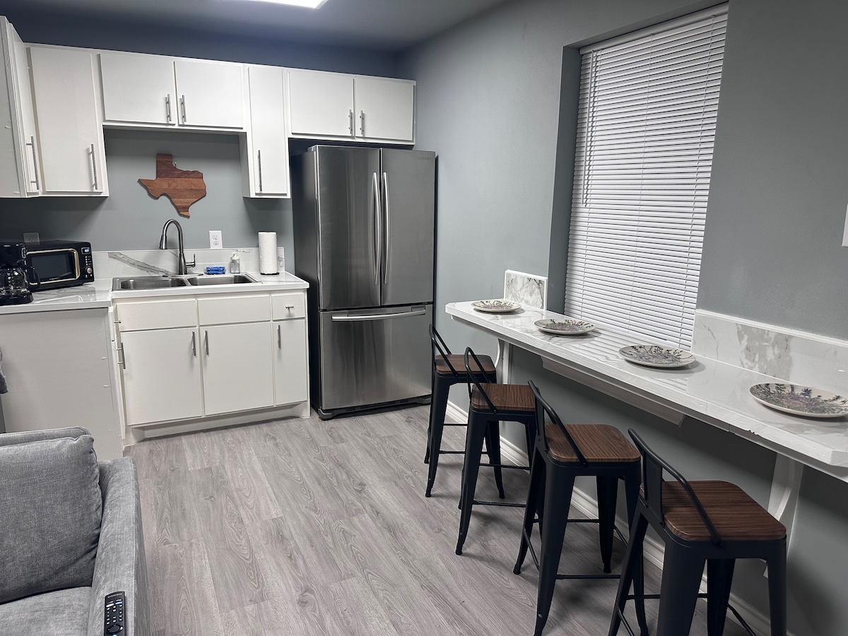 Fully remodeled in 2025, this stylish 2BR/1BA apartment blends modern comfort with a Texan western theme. Located in the heart of downtown Brownsville, our private gated complex puts you steps from restaurants, bars, and cafés. Walk to nightlife or relax in a secure, quiet retreat after exploring the city. Perfect for travelers seeking convenience, charm, and comfort in one place.