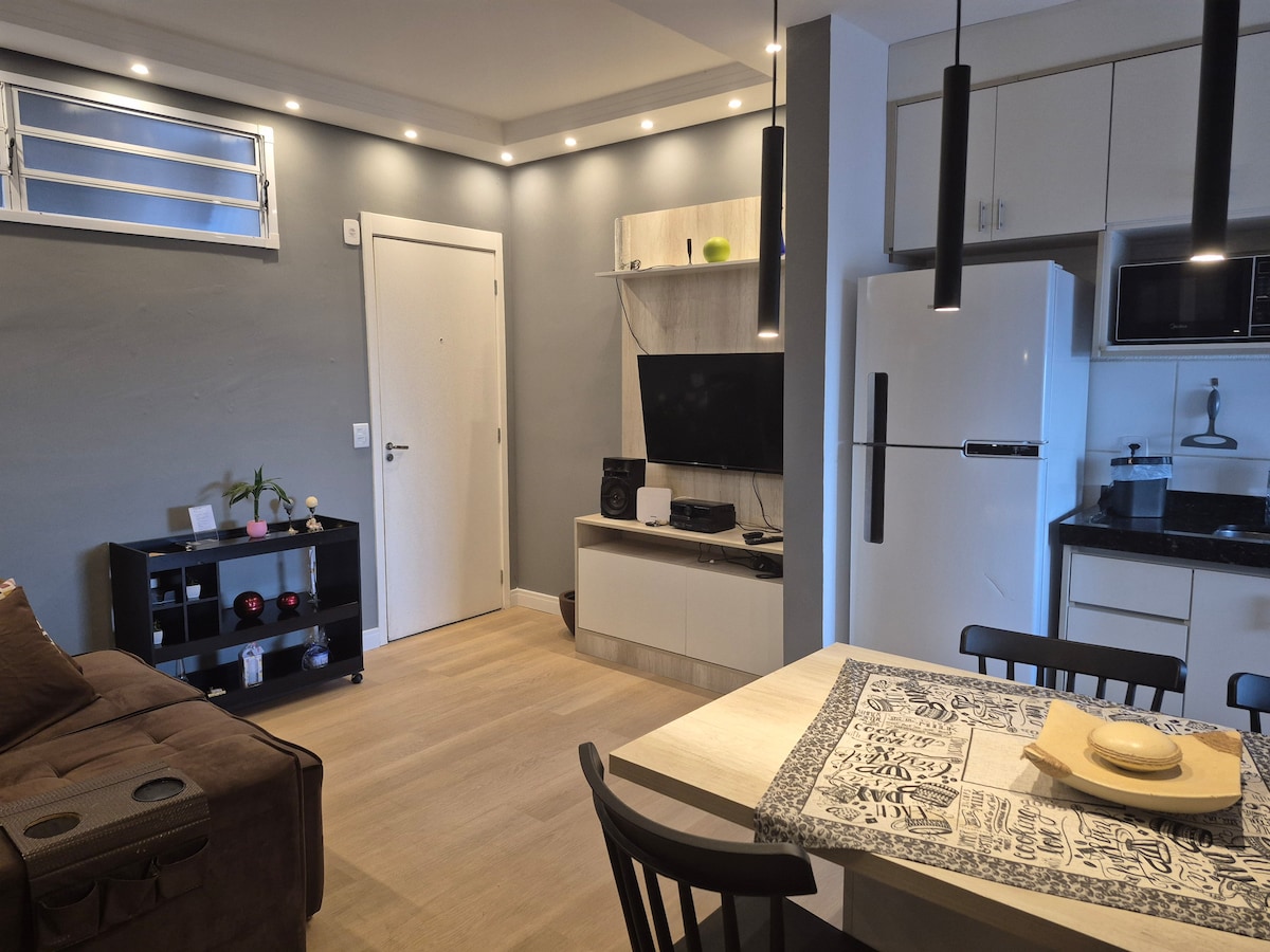 Odsjednite u blizini Shopping Jaraguá, Havan i Fatec u Araraquari. Lijepo i sigurno područje. NOVI AP, u zatvorenom kondominiju, u prizemlju, s Wi-Fi mrežom i NETFLIXOM, glavnim vratima s elektronskom bravom (samostalni dolazak), prva spavaća soba s bračnim krevetom, KLIMA UREĐAJEM i velikim ORMARIĆEM, druga spavaća soba s bračnim krevetom i bez klima-uređaja, dnevni boravak s TV-om, kuhinja opremljena svim novim uređajima, vešeraj, kupatilo za druženje i 1 parking mjesto.