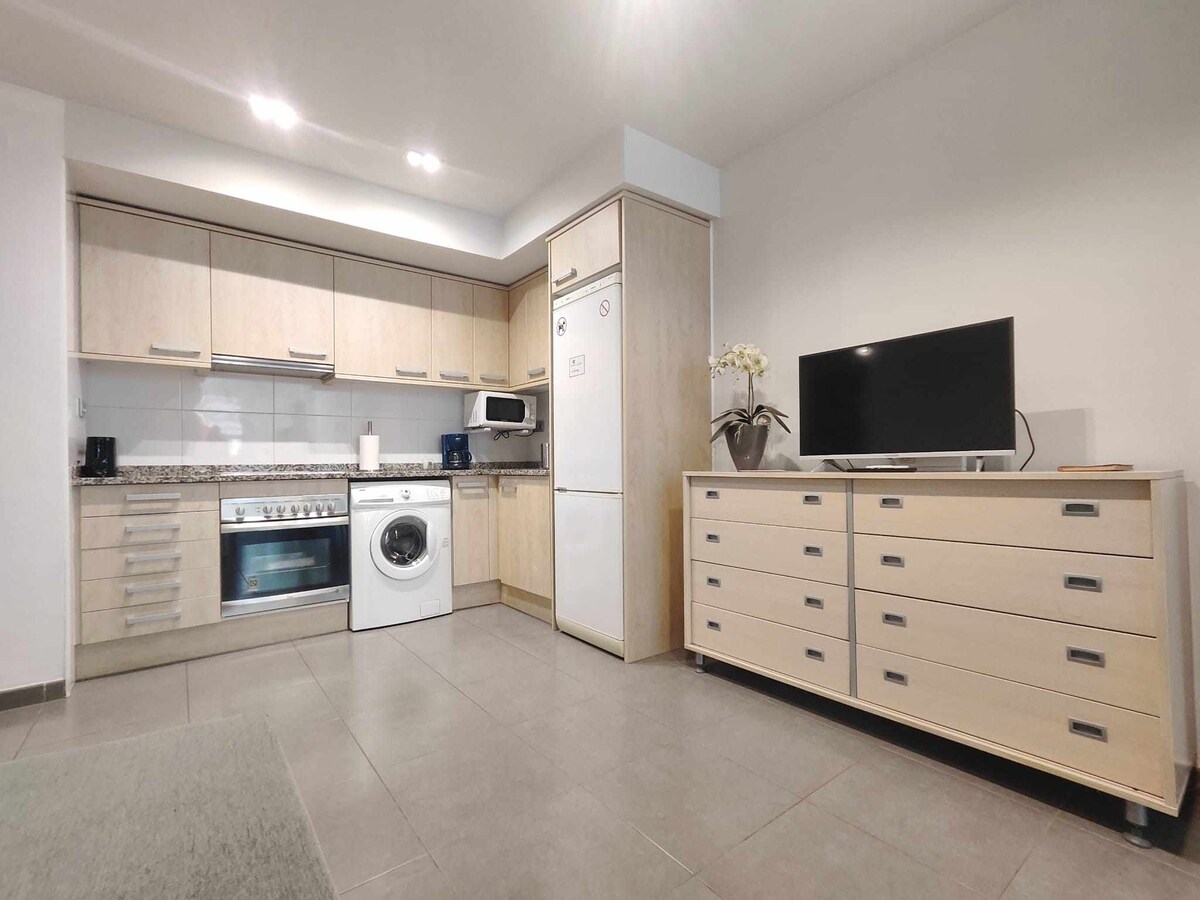 Vrlo dobro smješten stan, u blizini svih sadržaja. Samo 3'do plaže i 5' do centra i željezničke stanice RENFE R1. Potpuno opremljen. Ima 1 spavaću sobu s 1 bračnim krevetom i 1 kupatilo s tuš kabinom, nedavno renoviran. Potpuno opremljena kuhinja, aparat za kafu Dolce Gusto i zajednička mašina za pranje veša. Mali balkon na kojem možete vidjeti more. Viscoelastični madrac. Imate 600 MB VLAKANA za rad na daljinu. HUTB-033567