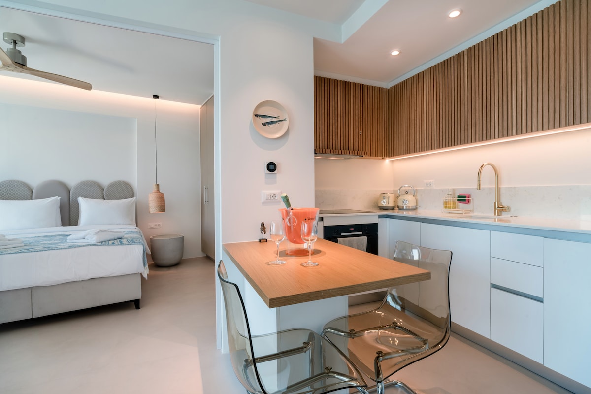 Elounda Mimal – Moderna elegancija u srcu Elounde Dobro došli u Elounda Mimal, profinjeno urbano utočište smješteno na živahnom glavnom trgu Elounda. Ovaj potpuno novi dvosobni stan spaja minimalistički luksuz s toplim prirodnim teksturama, nudeći savršen odmor za parove, porodice ili male grupe koje traže udobnost i stil, samo nekoliko koraka od mora.