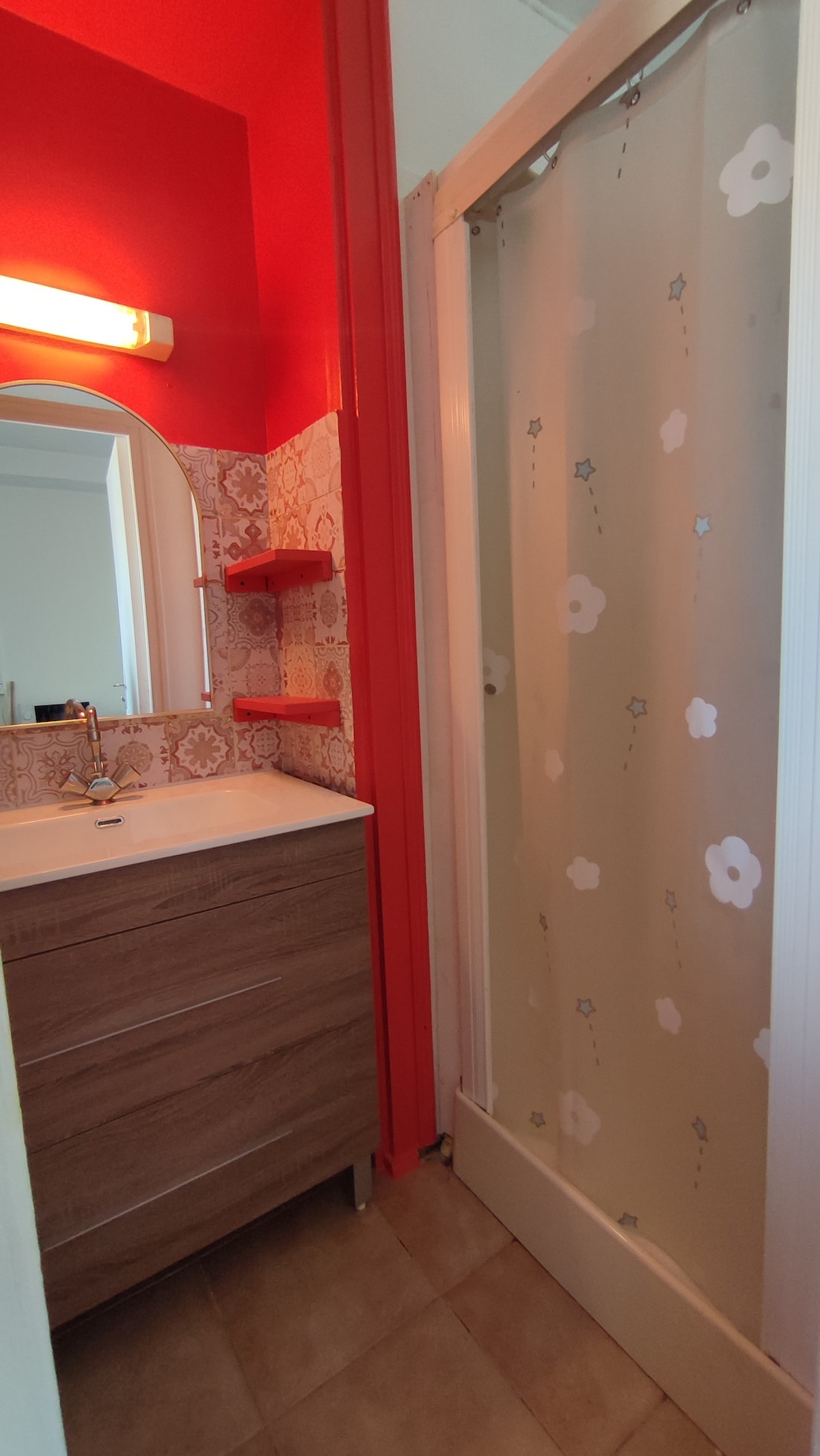 Dobro došli u ovu kinematografsku sobu u srcu Lavala, udaljenu samo 250 m od željezničke stanice TUL. Ovdje je sve dizajnirano za jedinstveno i impresivno iskustvo: Veliki 🎥 ekran i HD projektor s Netflixom, Canal +, Prime Video... Atmosfera kina 🍿 s kultnim posterima, prigušenim svjetlima i aparatom za kokice 🛏️ Udoban bračni krevet (180/200) okrenut prema ekranu 🍽️ Opremljena čajna kuhinja s trpezarijom 🚿 Elegantno kupatilo u crnoj i zlatnoj boji