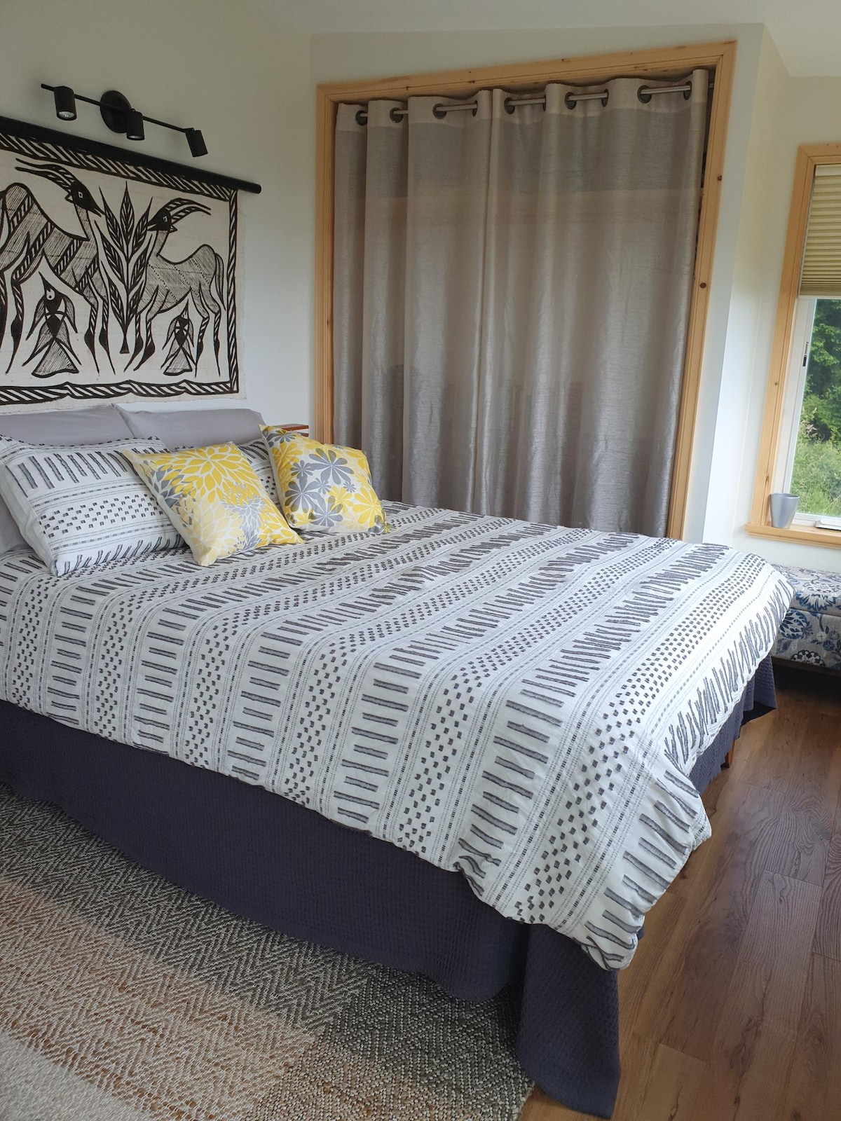Opustite se u privatnom šumskom utočištu sa saunom od cedrovine, peći na drva, vanjskim tušem i prostranom terasom s pogledom na jezerce, samo nekoliko minuta od plaže Beddis. Ova seoska kućica od 56 m² nudi udobnost uz bračni krevet, kauč na razvlačenje, Firestick TV i osnovne potrepštine za doručak. Smješten na 5 hektara i samo 10 minuta vožnje do Ganges Villagea, The Blue Ewe je idealan za parove ili putnike koji putuju sami i traže mir, prirodu i podmlađivanje na otoku Salt Spring.