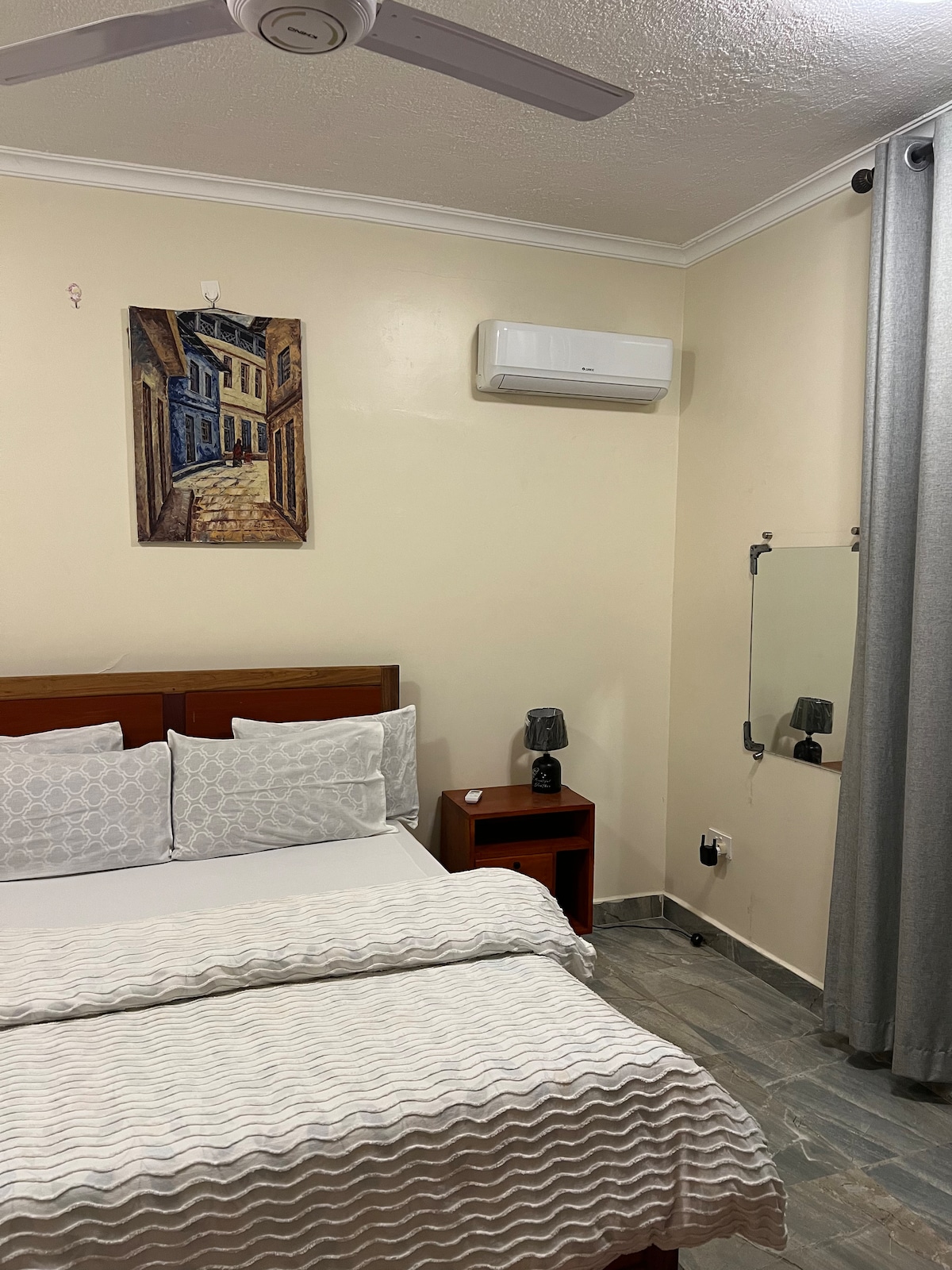 Located in Mbezi beach makes this the perfect place for anyone looking for serenity and security while being in close proximity to all of the popular establishments in the area. The fenced apartment has a smart TV for your entertainment, high-speed Wi-Fi, a bedroom with a queen size bed, ceiling fan and air conditioner. This home is perfect for backpackers, couples or anyone looking for something simple, serene and comfortable near the beach,