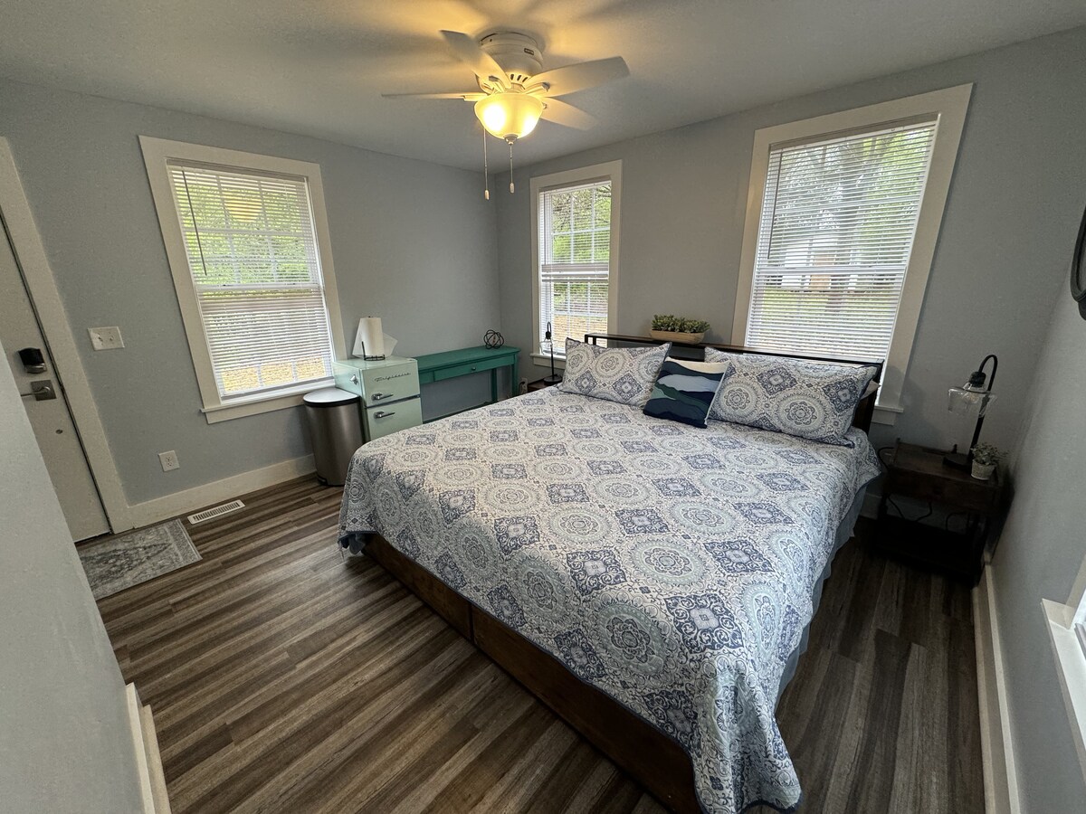 Welcome to our cozy one bedroom suite located on first floor and have access to the fenced backyard ,one bedroom and one bathroom , good for 2 guests with queen bed very comfortable that you experienced a good night sleep, bedding get ironed after each laundry and they are odor free, you’ll find a welcoming basket on table and something to cook or just a popcorn for movie, don’t forget share your good ideas in the notebook 😊