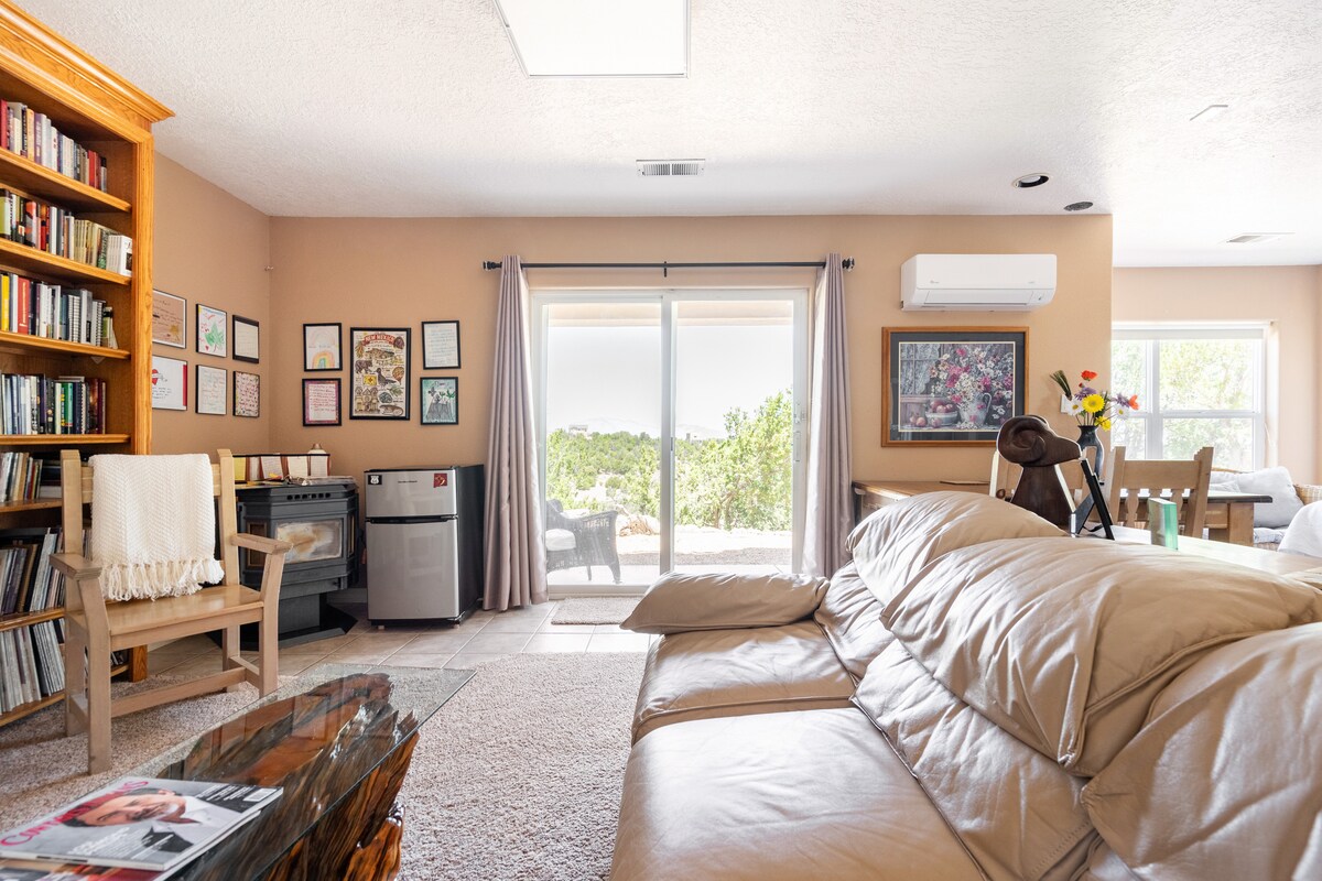 Welcome to your peaceful safe retreat in the best foothill neighborhood—just 7 min from I-40, 12 from I-25. Tucked away on a quiet cul-de-sac, this cozy in-law suite was created for loved ones. Enjoy your private entry, your own patio with outdoor dining and seating, and off-street parking. Feel at home as you relax in the serene 2/3-acre garden with a tranquil pond, tea hut, and deer visitors. Trails and grocery are a short walk away. Sip organic coffee, rest in all-white linens, and simply be.