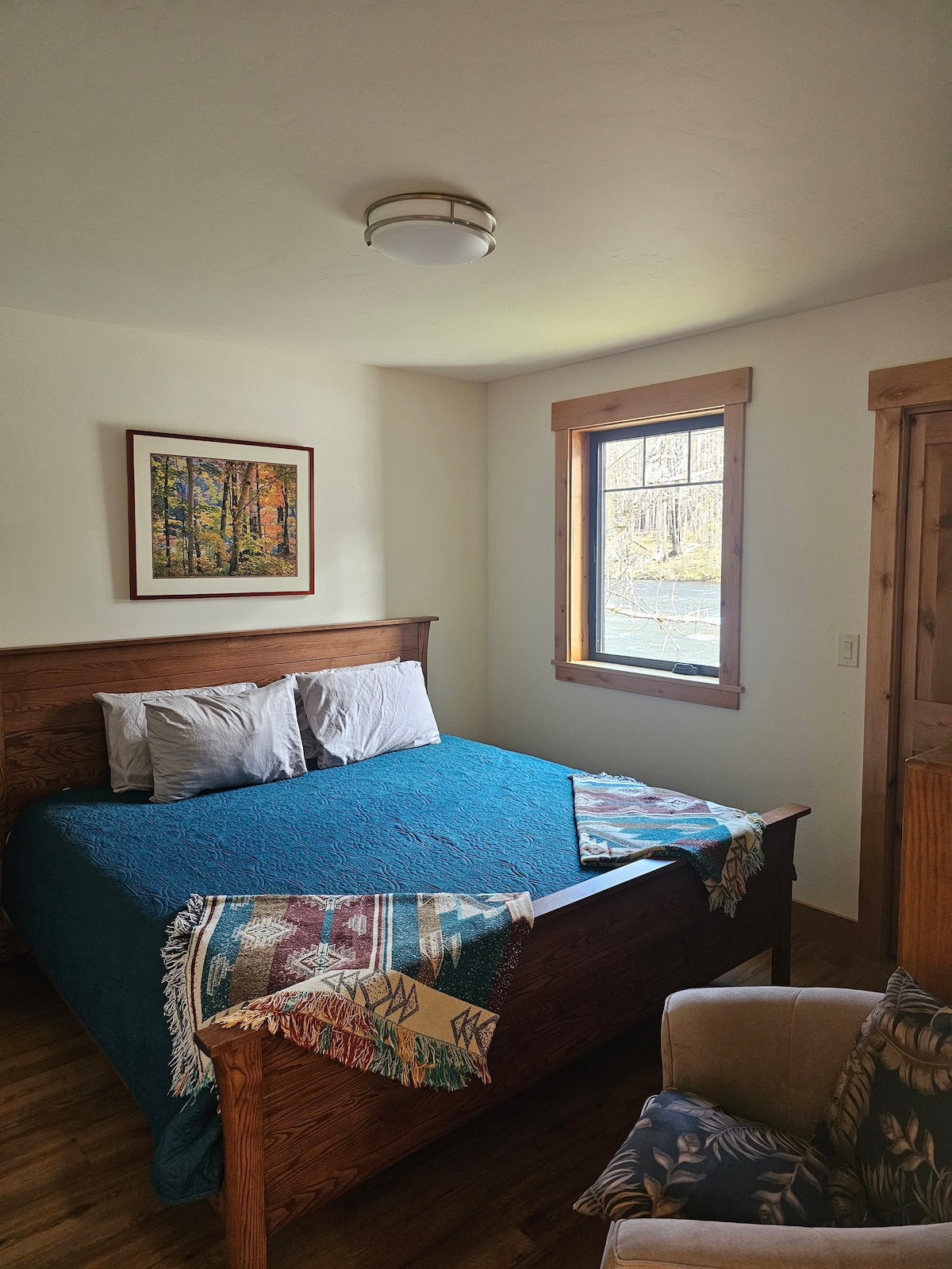 Come to the McKenzie River and stay at our relaxing, fully furnished home with 3 bedrooms: including 2 master bedrooms with 1 king and 2 queen sized beds. This home sits on the river just steps away from the water and is centrally located near many outdoor attractions. The McKenzie River is a hot spot for fishing and rafting that our home sits right on the edge of. Adventure by day and sleep to the comfort of the river sounds by night.