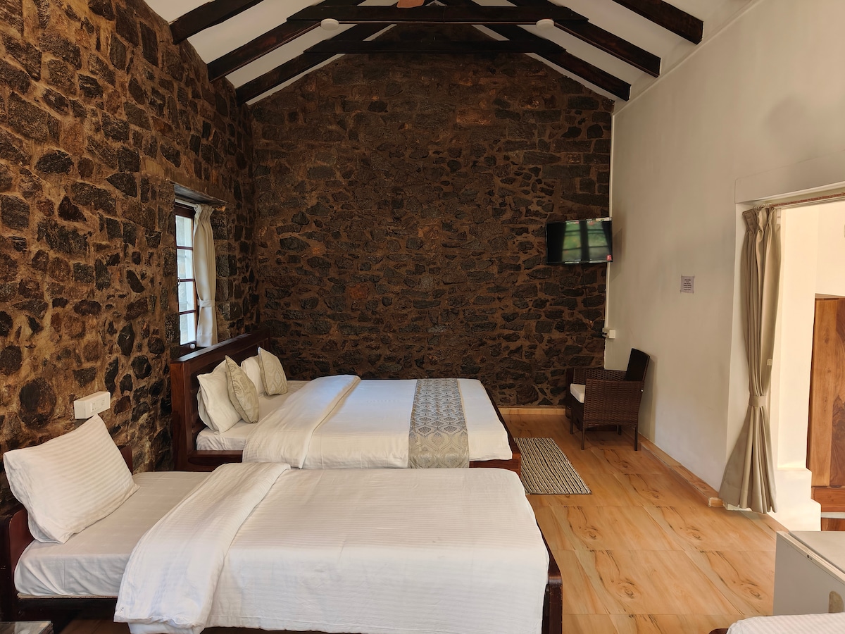 Fernhill Cottage, was originally built as a holiday home for the owners, Dr George Paul and his wife Dr. Bini George. The house was inspired by the model of old English cottages of Yercaud built in the early 20th century. The house is built out of rough hewn granite stones furnished with a modern kitchen and toilets. The house has a wooden loft accessed by a spiral staircase and can be used as a bedroom/ recreational area.