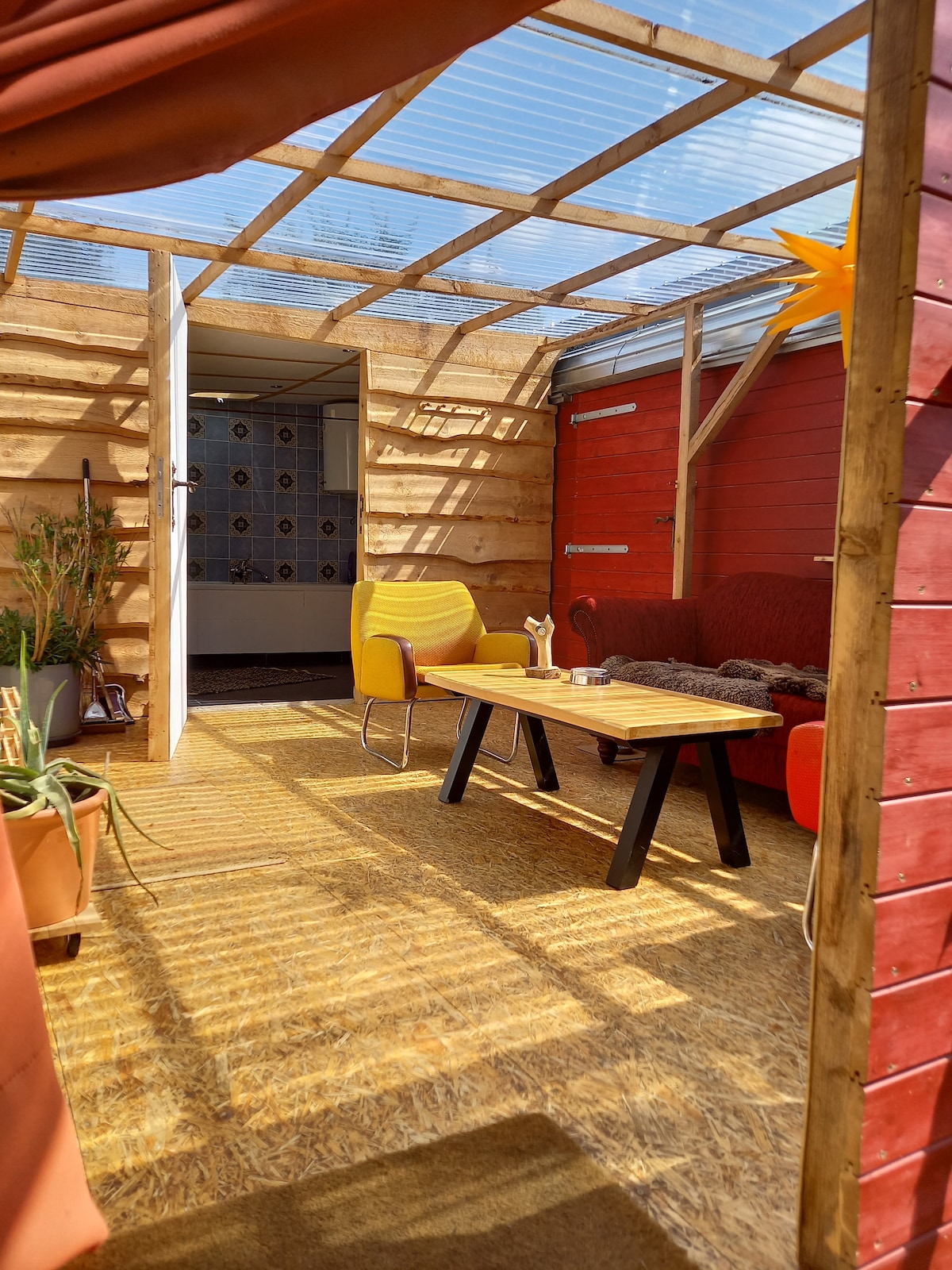 Na brdu, smještenom uz staro drveće, stoji 1 od 3 nekonvencionalne seoske kućice, svaka s 2 mjesta za spavanje. U bilo kojem vremenu (osim zimi), koliba može ponuditi ljubiteljima kampovanja, biciklistima ili kratkoročnim posjetiocima noćenje kao alternativu šatoru. Samo vreća za spavanje i peškir u prtljagu. Udobnost se sastoji od krova nad glavom, mjesta za spavanje, lijepe logorske vatre i toplog vanjskog tuša s odvojenim WC-om.