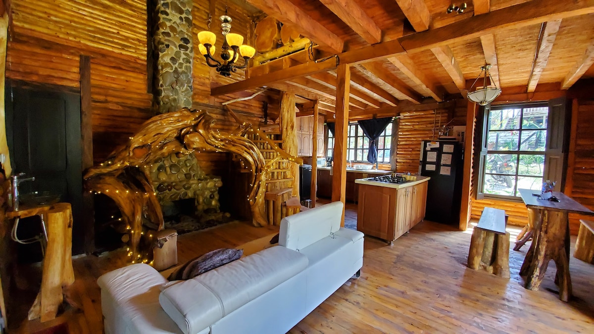 Perched on the edge of the mountains above Medellín, this spacious wooden cabin is a one-of-a-kind retreat with breathtaking views of both the city and the mountains surrounding the city. Perfect for families or groups, it offers total privacy, four bedrooms, two baths, and cozy indoor and outdoor spaces. Soak in the jacuzzi while the city lights sparkle, wake up above the clouds, and enjoy mornings with coffee on the deck. Fireplace, BBQ, garden, and bonfire space included.
