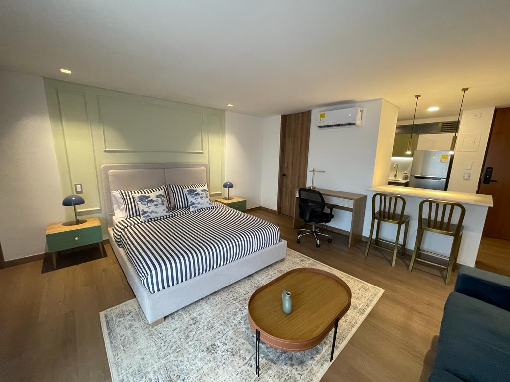 Opustite se u ovom elegantnom, modernom stanu u srcu Manile, El Poblado, samo nekoliko minuta od Provenze, parka Lleras i vrhunskih medicinskih centara kao što su Clínica Medellín, Clínica Las Vegas i Clínica El Rosario. ✔Uživajte u bračnom krevetu (king size) s vrhunskom posteljinom, ✔Moderno kupatilo s tuš kabinom, ✔Pametni TV, ✔Brzi Wi-Fi ✔Potpuno opremljena kuhinja. ✔ Privatni balkon ✔Klima uređaj ✔ Topla voda ✨Savršeno za kratke boravke, poslovna putovanja ili oporavak.