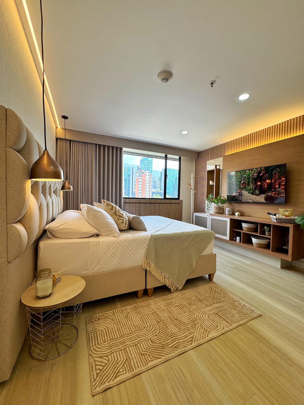 Luksuzni stan na 21. spratu u El Pobladu s privatnim đakuzijem, panoramskim pogledom na horizont i planine. Opustite se na balkonu, uživajte u udobnosti uz klima-uređaj, radite uz brzi Wi-Fi i namjenski radni prostor te uživajte u 3 HD televizora s Netflixom, potpuno opremljenoj kuhinji, mašini za pranje/sušenje veša i čajnoj/kafi stanici. Pristupite spa centru, teretani, parnoj sobi, bazenu, restoranu i kafeteriji. Kratka vožnja do Parques Lleras i Provenza, vrhunskog utočišta za luksuz, stil i udobnost.