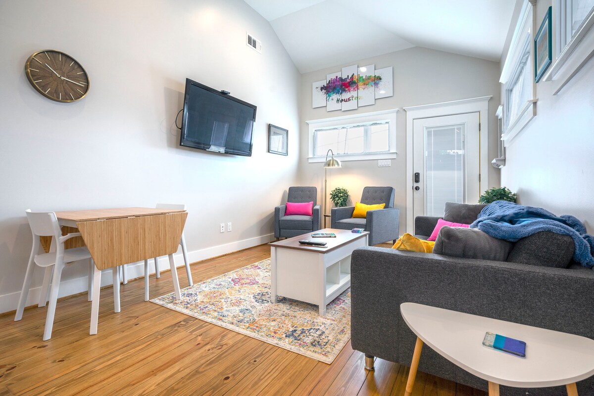Vrhunska, moderna, velika, 1 spavaća soba s privatnim ulazom u srcu Houston Heightsa. Udaljeni smo nekoliko koraka od pješačke i biciklističke staze te popularnih restorana i prodavnica u Heights Mercantileu i kratke šetnje od MKT razvoja. Potpuno opremljena kuhinja i udoban dnevni boravak s Apple TV-om dostupnim na TV-u 50 na TV-u. Brz i pouzdan internet. Izuzetno udoban bračni krevet s pamučnim plahtama i zatamnjenim zavjesama u spavaćoj sobi. Na raspolaganju su i zračni madrac veličine kraljice, pakovanje i igra.