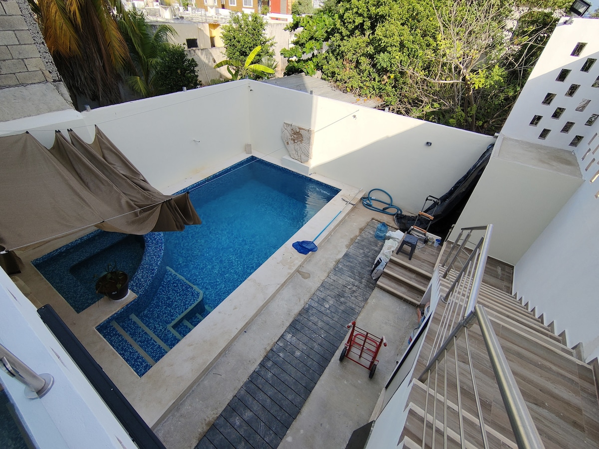 Uživajte u elegantnom iskustvu u ovom smještaju koji se nalazi u centru grada. Lijep čist studio na pješačkoj udaljenosti od širokog spektra trgovina, trgova, kina, noćnih klubova, restorana, parkova, 24-satne trgovine OXXO, 60 koraka do autobuske stanice. Udaljenost vožnje do aerodroma MID 15 min, autobuske stanice ADO 8 min, centralnog Grand Plaza 15 min, plaže Progreso 35 min.