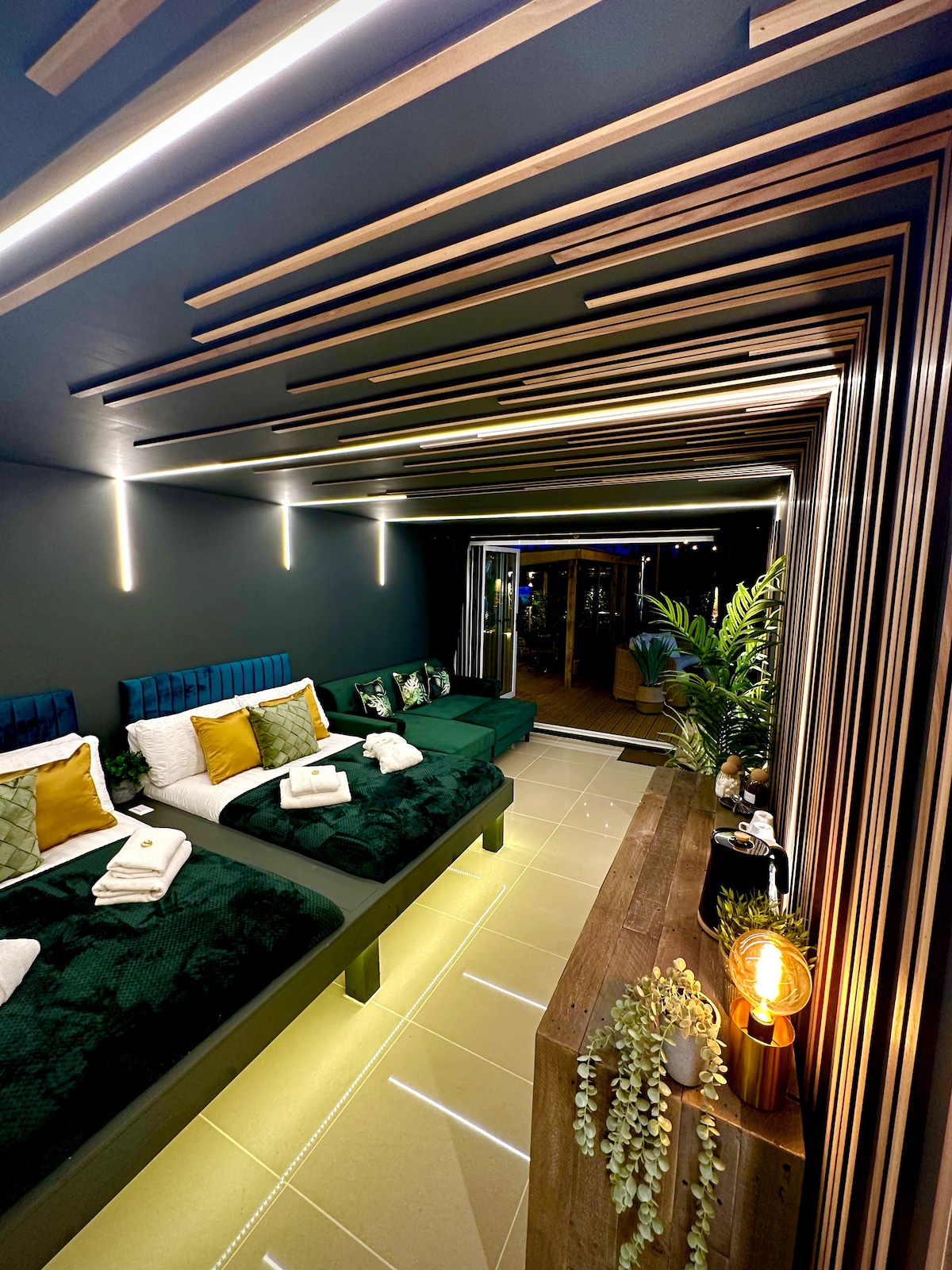 Dobrodošli u The Oasis, skriveni dragulj smješten u našoj očaravajućoj šumi. Ova jedinica se besprijekorno stapa sa svojim okruženjem, nudeći mirno utočište zajedno sa svim luksuznim sadržajima koje ste očekivali od The Secret Garden Glampinga. Uronite u vrhunski doživljaj na otvorenom s našom nevjerovatnom masažnom kadom na drva za 6 osoba, punim prostorom za zabavu na otvorenom, uključujući bar i sadržaje za kuhanje na otvorenom, i kino za nezaboravne filmske večeri pod zvijezdama.